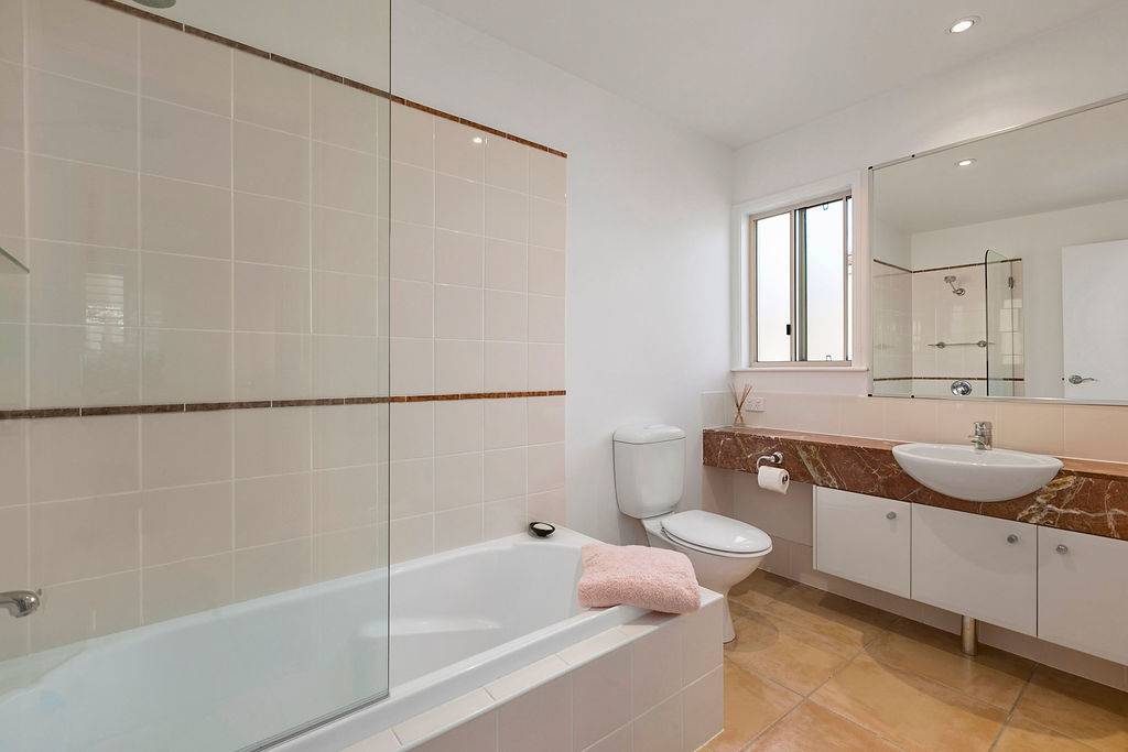 An air of Italy pervades villa 108 in The Cascades, the closest precinct to the gatehouse. Just 5 minutes drive from Main Beach and Hastings Street. Beautiful new stone flooring throughout the ground floor of villa 108 complements the generous white stone italia kitchen benchtops and leads the eye to the sweet garden with its frangipani, hibiscus, camellias, hydrangeas, lavender and herbs. There is also a powder room and a double garage. Upstairs are 3 softly carpeted bedrooms and 2 lovely bathrooms in a Tuscan style, with granite benchtops and full of light. The master is nicely separated from the guest rooms and it has a good sized walk in robe and a covered terrace. The villa has a buggy bay which is very useful for storage if you don't want a buggy. Just 2 minutes walk will bring you to the superbly landscaped pool and bbq area for the Cascades precinct where you can entertain groups. The restaurant and bar at the club serves breakfast, lunch and dinner, and there is a beauty spa and gymnasium on the upper level. Lots of exercise classes are available in the gym. A heated lap pool is here also. Two tennis courts are available at any time with pre booking. This is a lifestyle choice...join in or not, just as you wish.