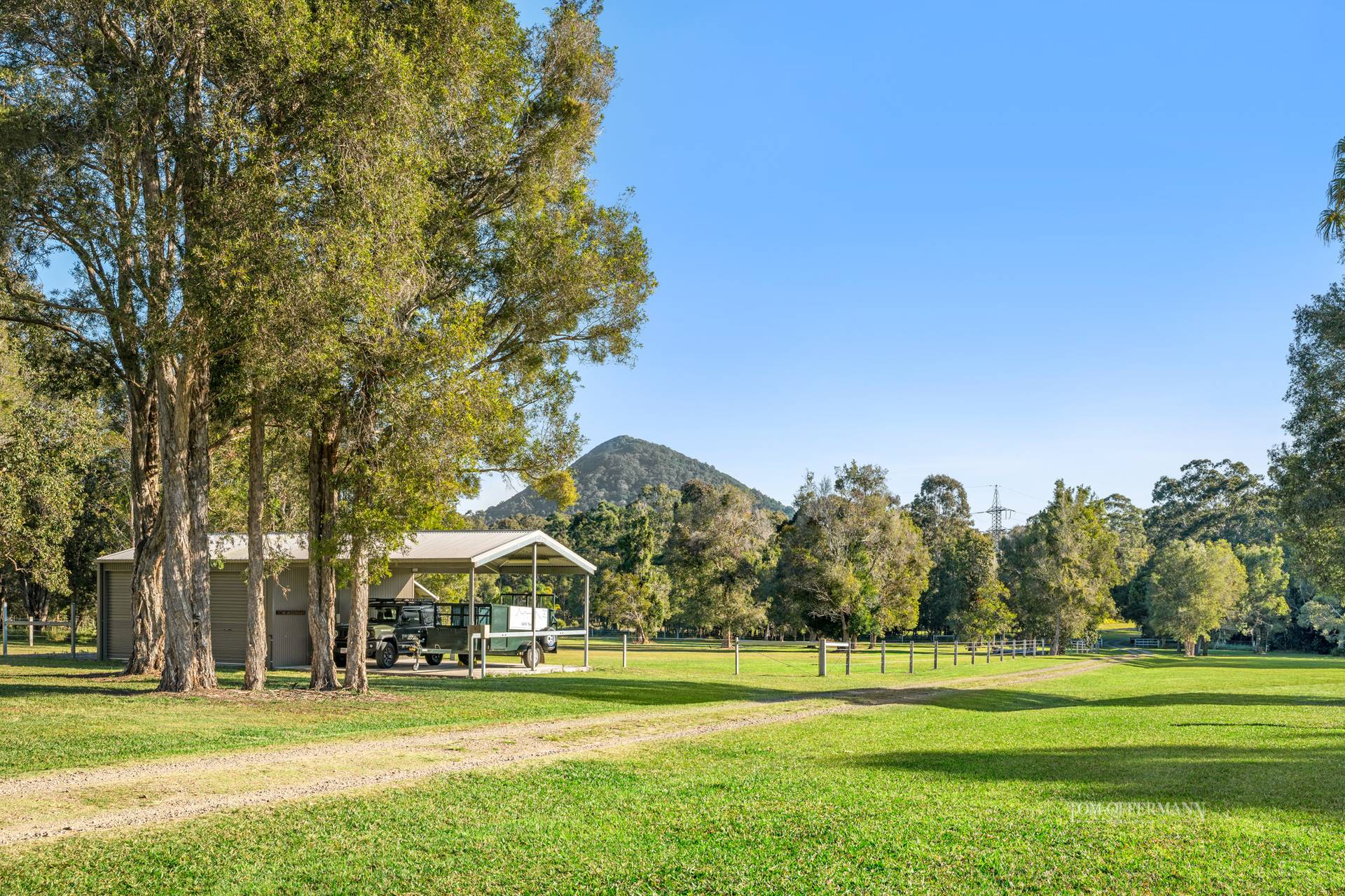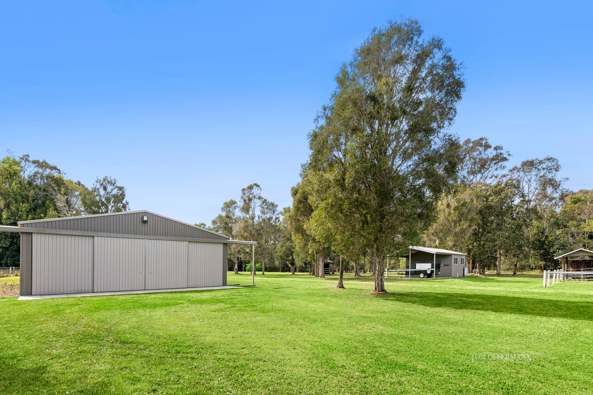 - External: 75,000L rainwater tanks; tractor shed; hangar 10m x14m; garage & workshop 6m x 18m; 4-bay horse stable 6m x 12m with gas hot water + electricity; chicken coop; 3 x fully fenced horse/livestock paddocks; concrete post fencing; spring fed dam; citrus & fruit trees incl. Mandarins, Limes, Oranges, Davidson Plum, Mulberry + Mango