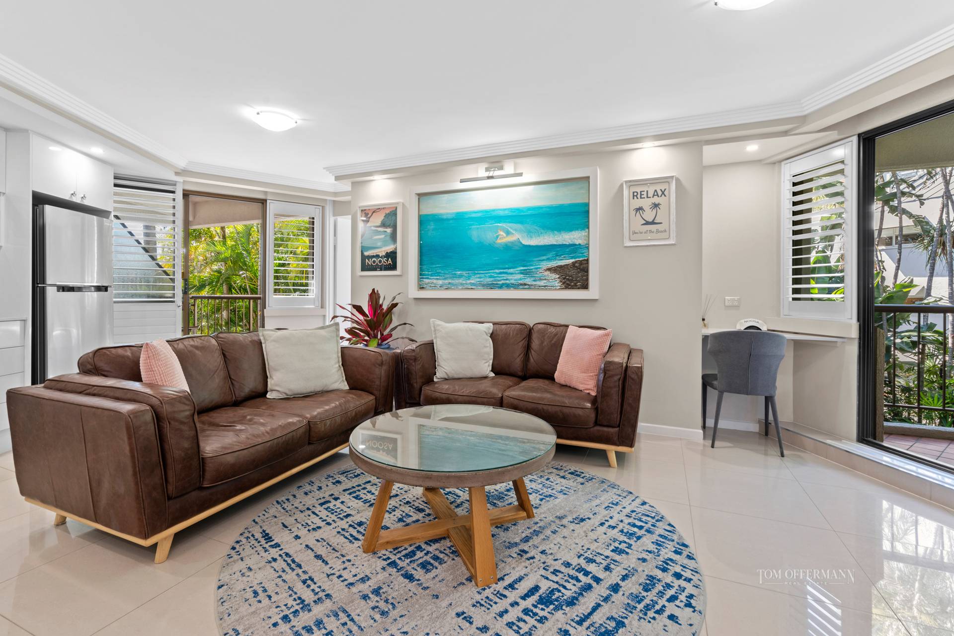 This superb north facing unit holds a corner position that is oriented to embrace sunlight creating ambience and warmth. Interiors exemplify a sense of calm and simplicity with the spaces responding to patterns of natural light whilst the palette of colours and detail in finishes celebrate coastal living. The pleasant outlook to established palm trees and tropical greenery are sure to evoke feelings of respite and relaxation and act as a gateway to the lush beauty of the Noosa National Park.