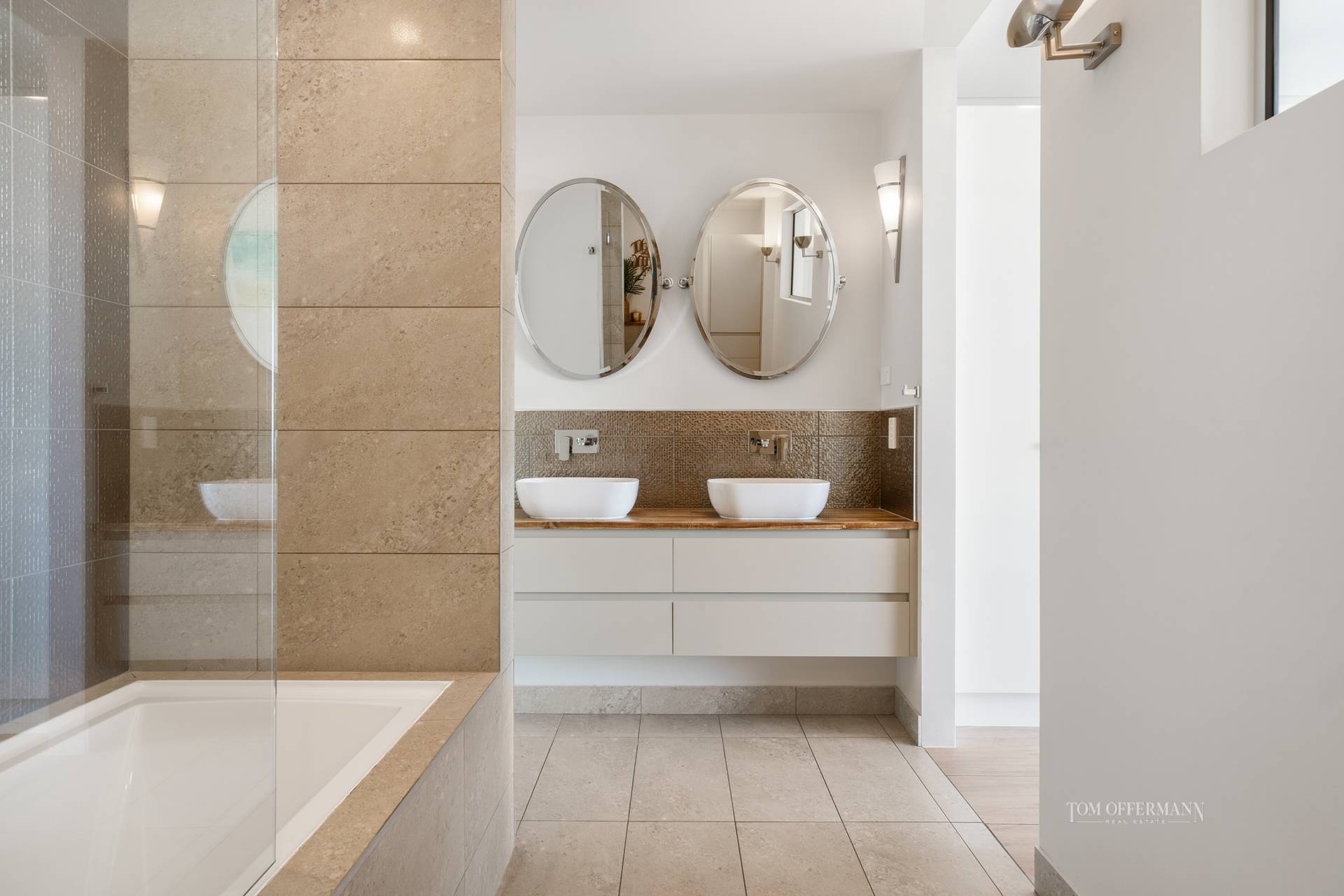 Drink in those same amazing views and spectacular sunsets from the master bedroom which opens to the same terrace. The large ensuite with lustre tiles, has the bonus of a bath and double vanity basins.