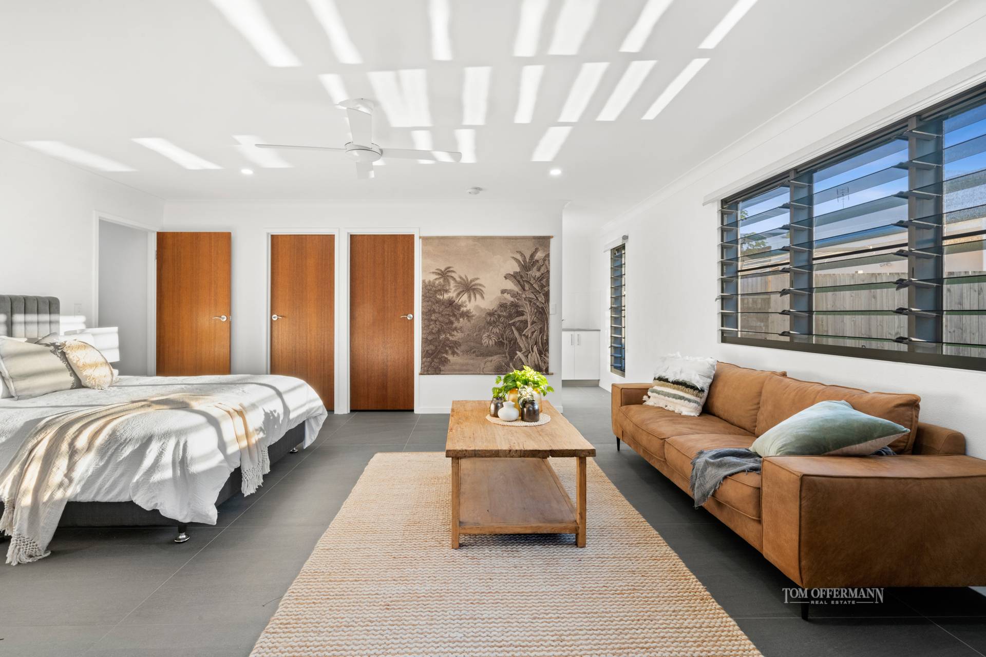 "This residence keeps on giving," extols Tom Offermann Real Estate agent Peter TeWhata, who is taking the property to auction on Saturday 2 October 2021, "and what an outstanding location. Only 2-minutes to catching a wave or taking the dog for a walk on Sunrise Beach, plus your close to walking and cycling tracks, schools, transport links, sporting fields, Noosa Aquatic and Tennis Centres, numerous shopping precincts such as Noosa Junction, also the vibrant Sunshine Beach village."