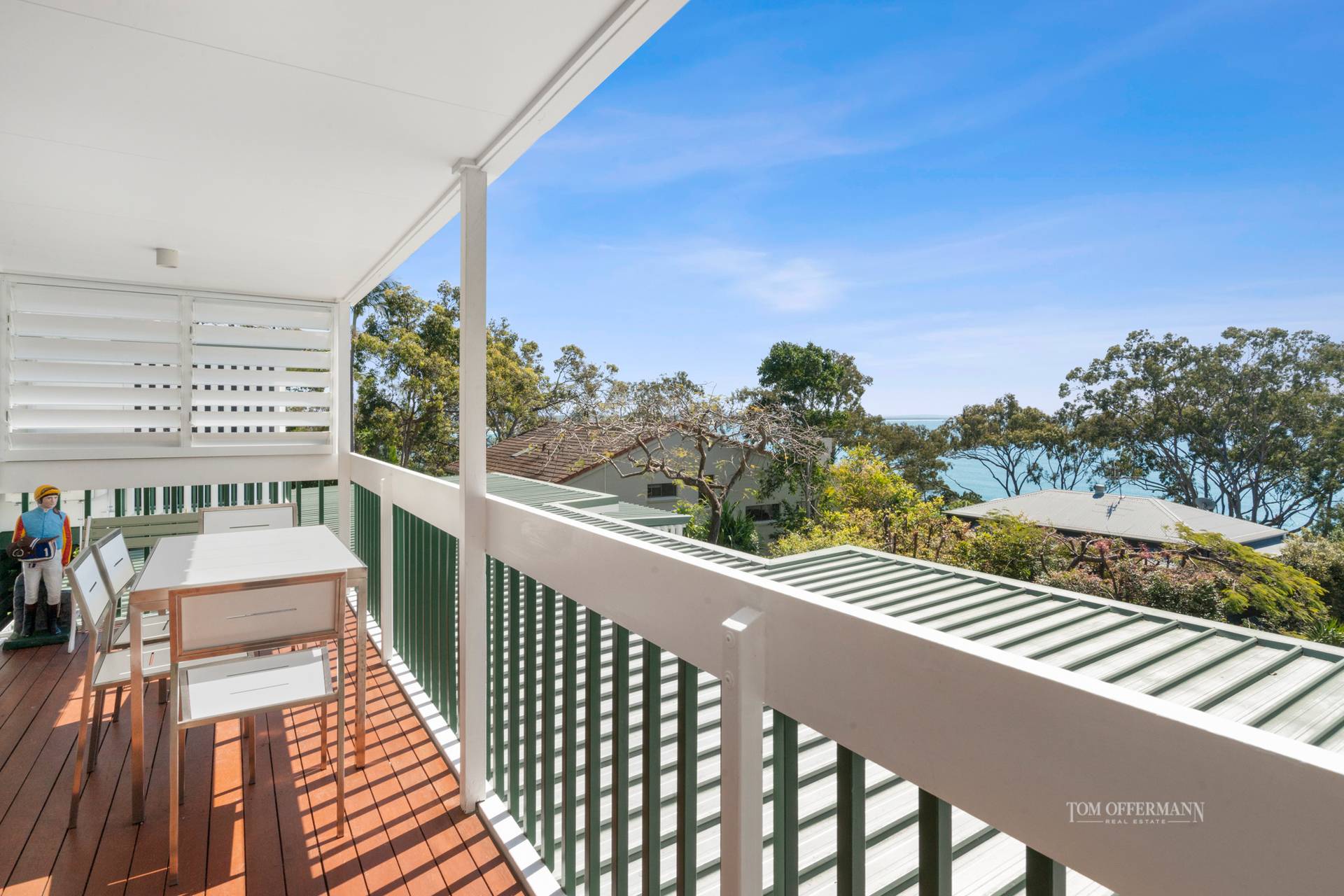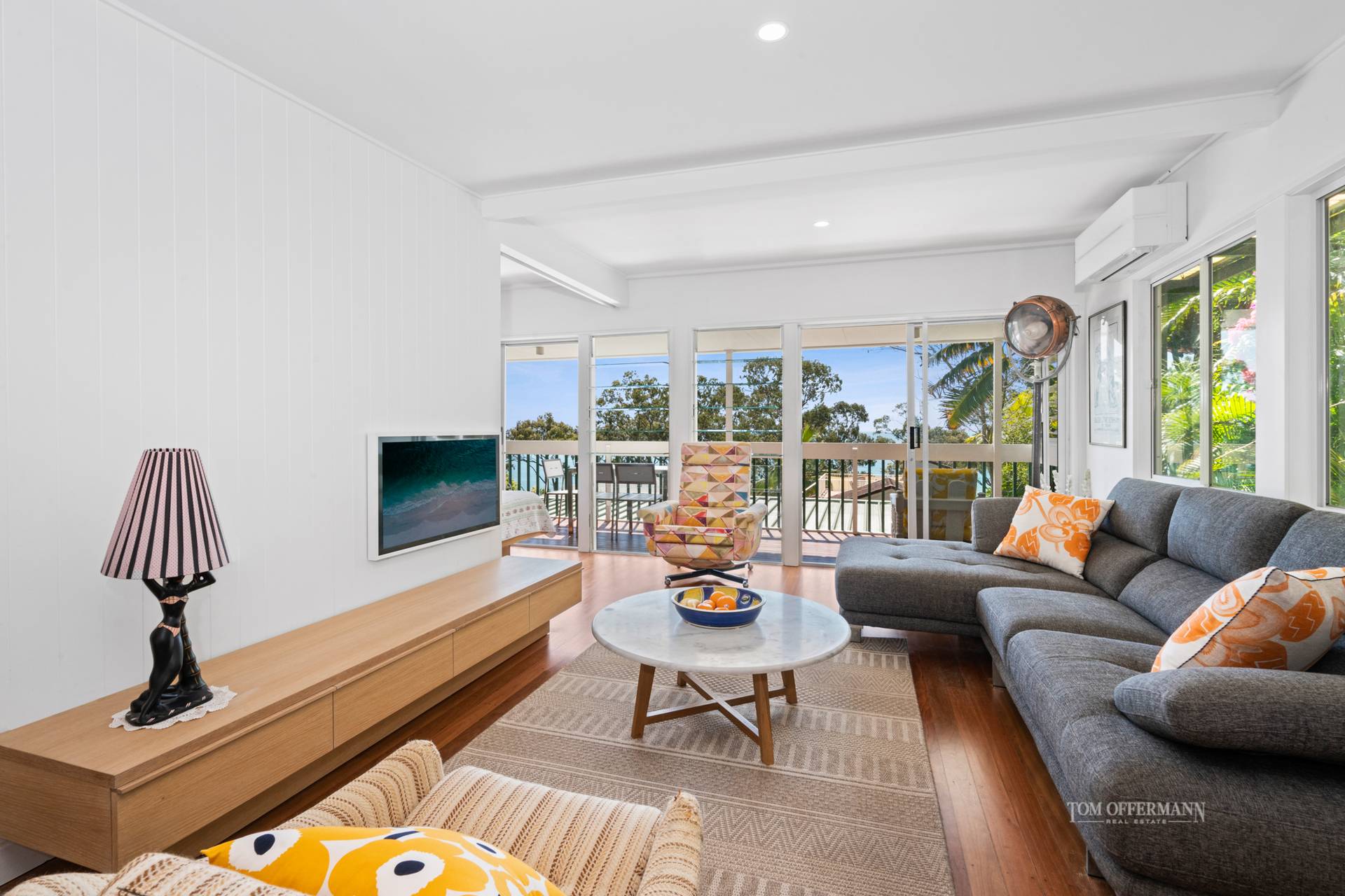 Banks of sliding doors and louvre windows invite floods of natural light and cooling breezes year-round. The 6.5m wide deck provides post-card views across Laguna Bay to the golden ribbon of sand trimming Noosa North Shore.