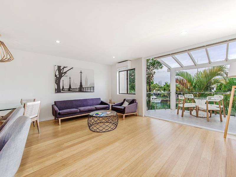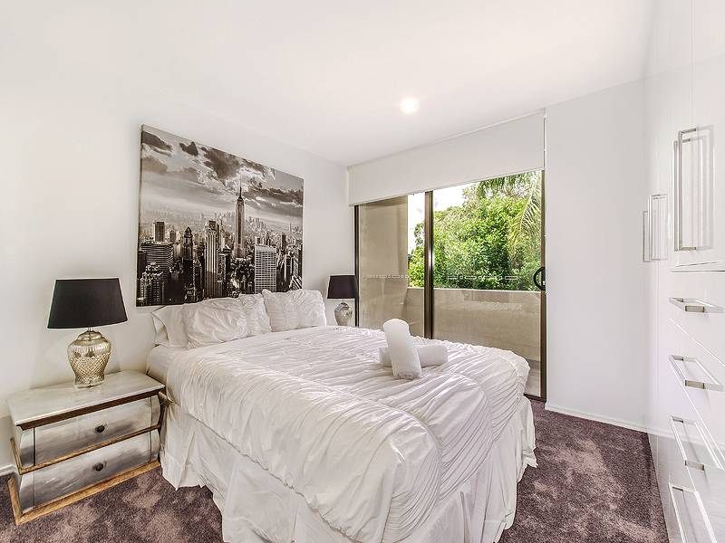 Street; proximity to Quamby Place restaurants; ferry stop, Quamby Park & bus stop; pool & beach in complex