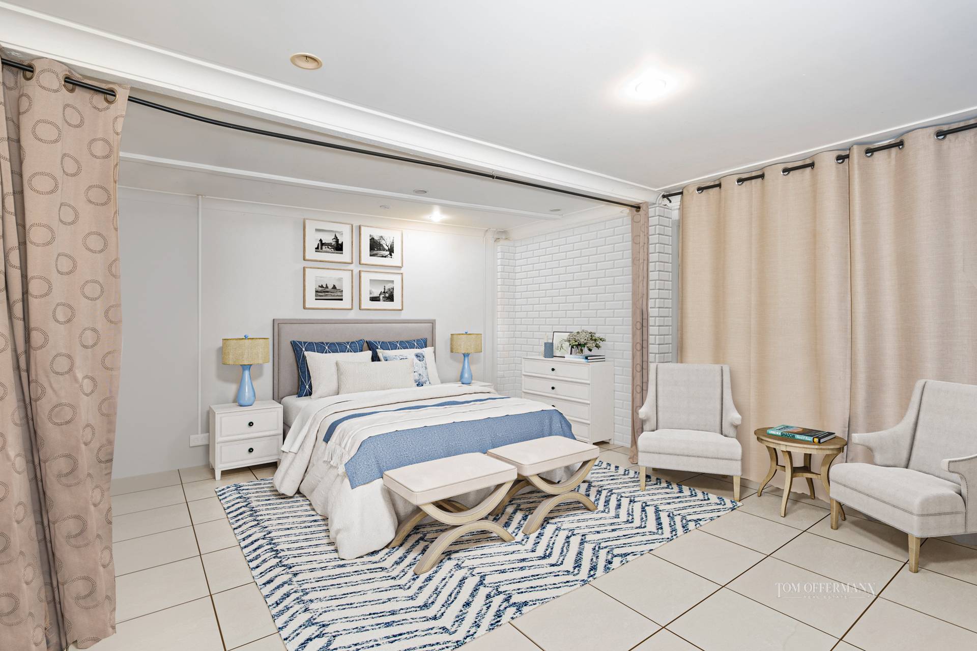 Downstairs has a further two rooms, bathroom, kitchenette and undercover terrace. Yes, it's full self-contained, has its own entrance and access to the rear garden. What a bonus for those looking for an extra income stream.