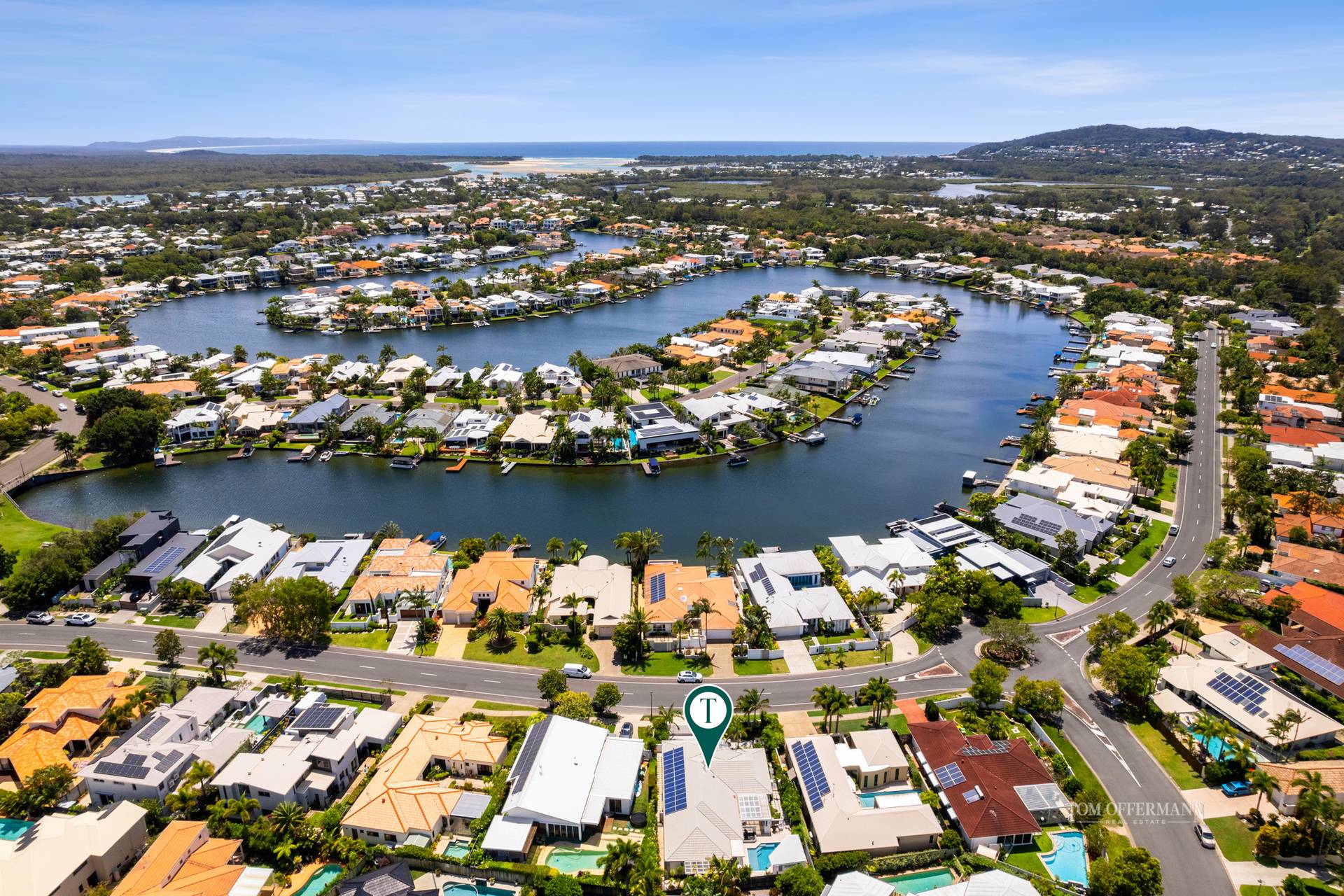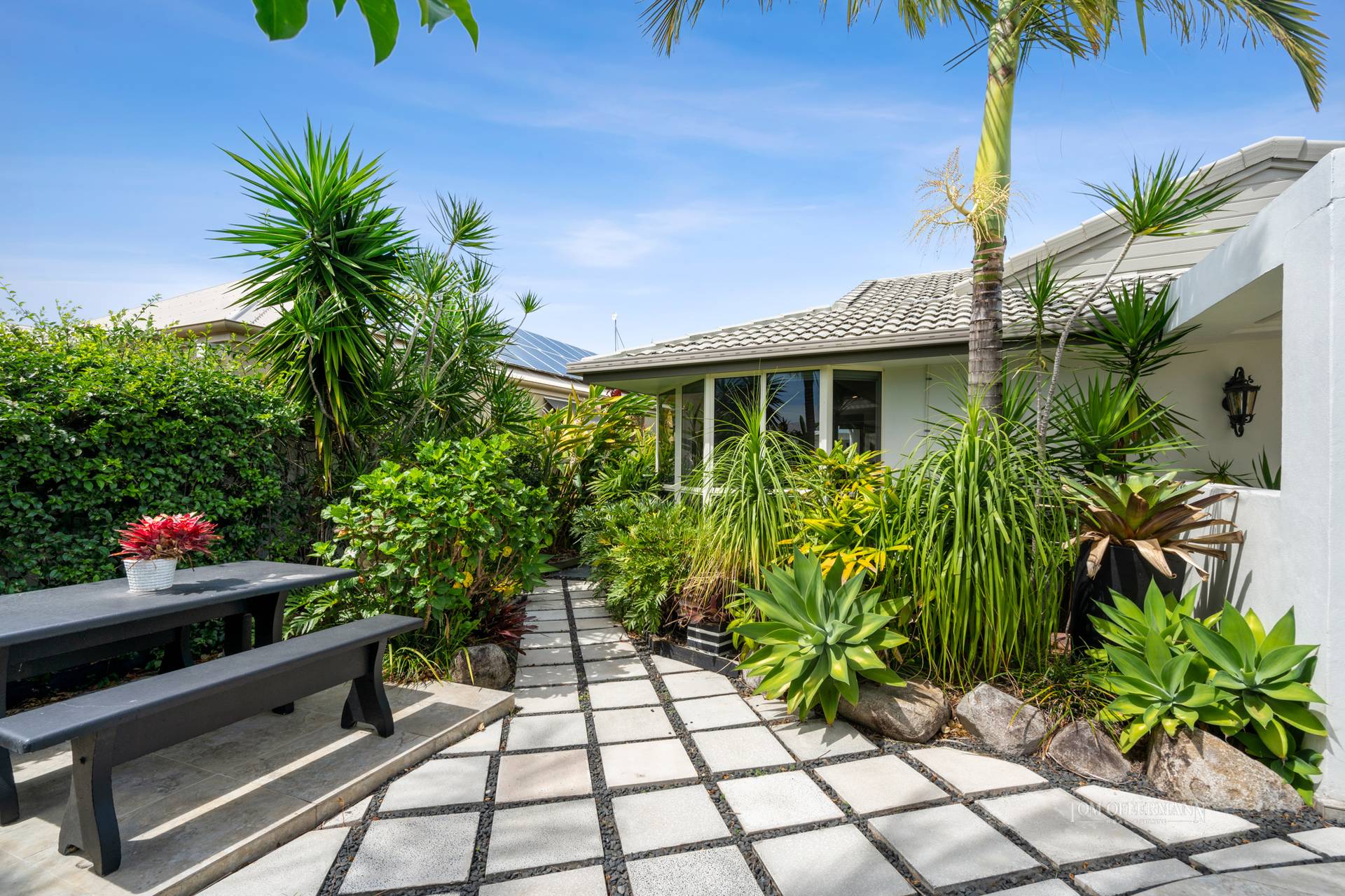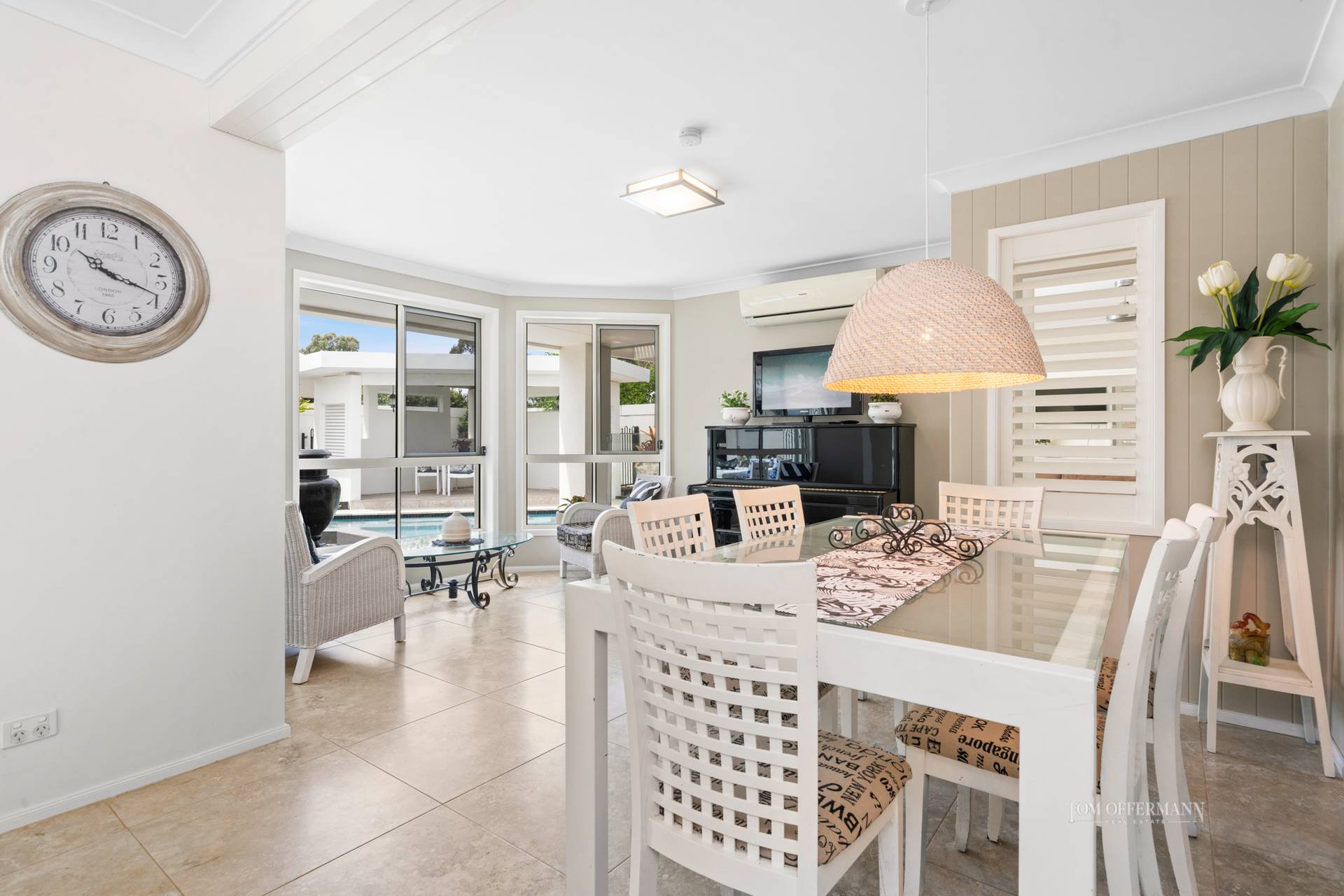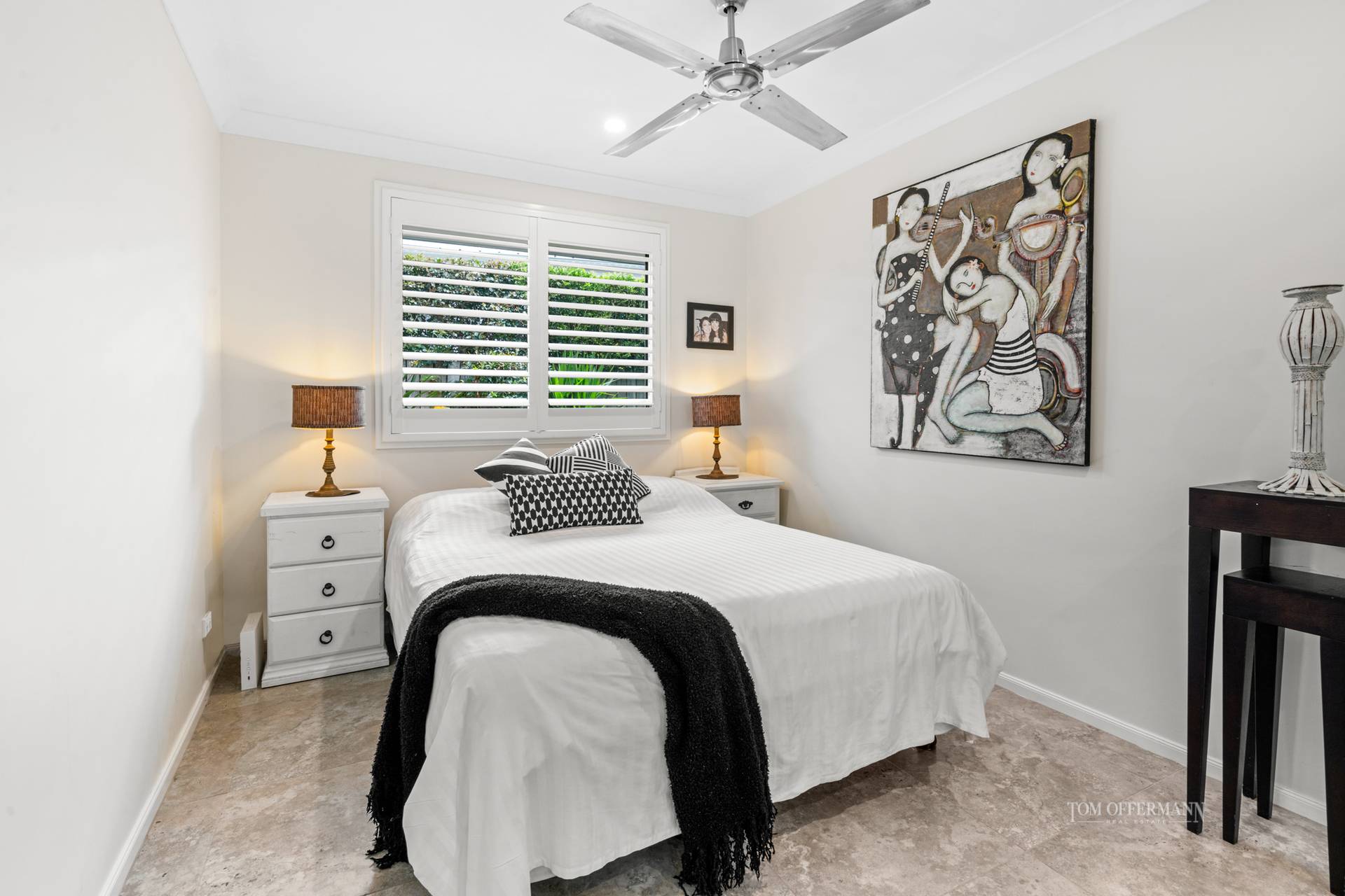 Hidden behind a striking sandstone feature wall, fresh white entry gates and blossoming boganvillas, this single level residence meets every level of expectation, and sits right in the heart of the highly prized Noosa Waters Estate.