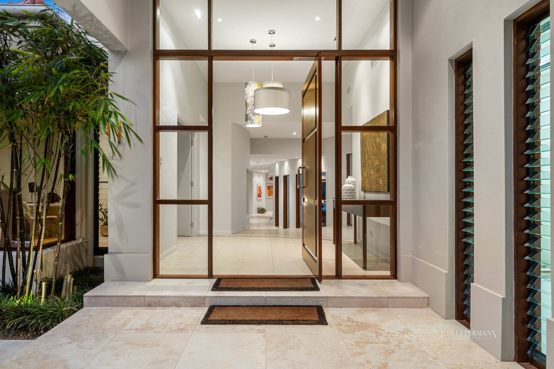 Admire the avenues fringed with gardenia hedges and gracious palms, the front garden with stunning bamboo and water feature centrepiece. Open the double timber-edged glass front door, note the chandelier-like pendants in the vestibule, look around, be instantly besotted and sigh.