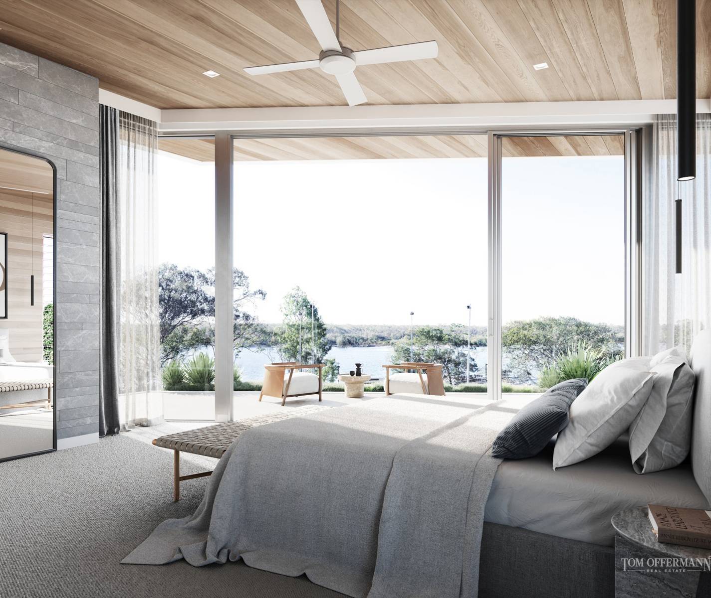 With a cornucopia of high-end interior design elements, nothing has been left to chance. Flooring and timber features are oak; benchtops in the kitchen and ensuite are stone; porcelain tiles have a natural look; a cool coastal palette reflects the location and climate; appliances are European; also quality fittings throughout complement the bespoke joinery and ensure a timeless aesthetic.