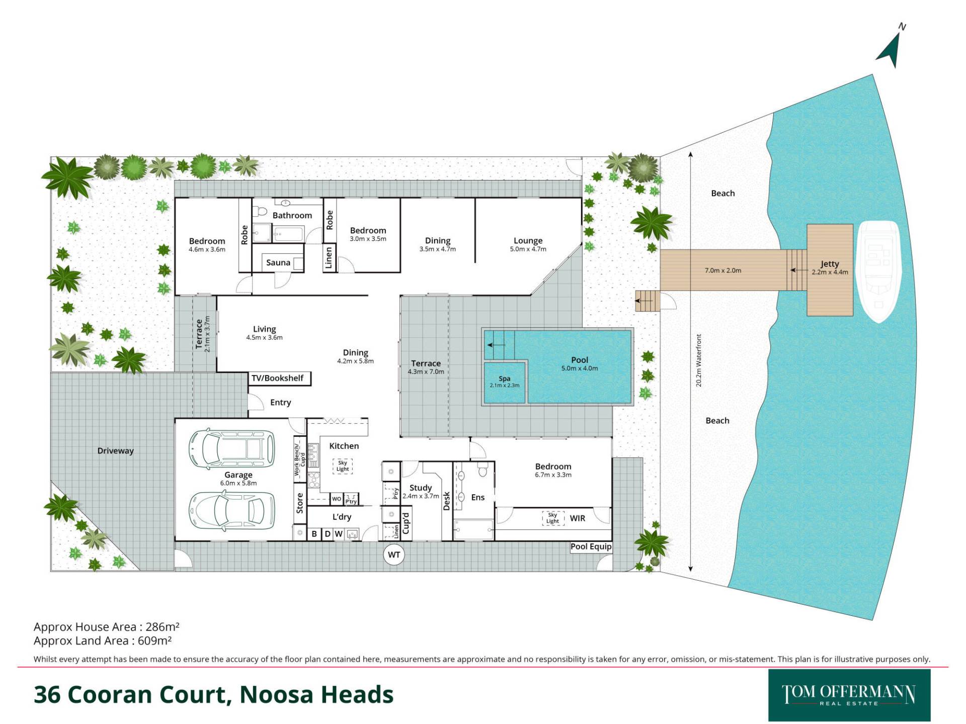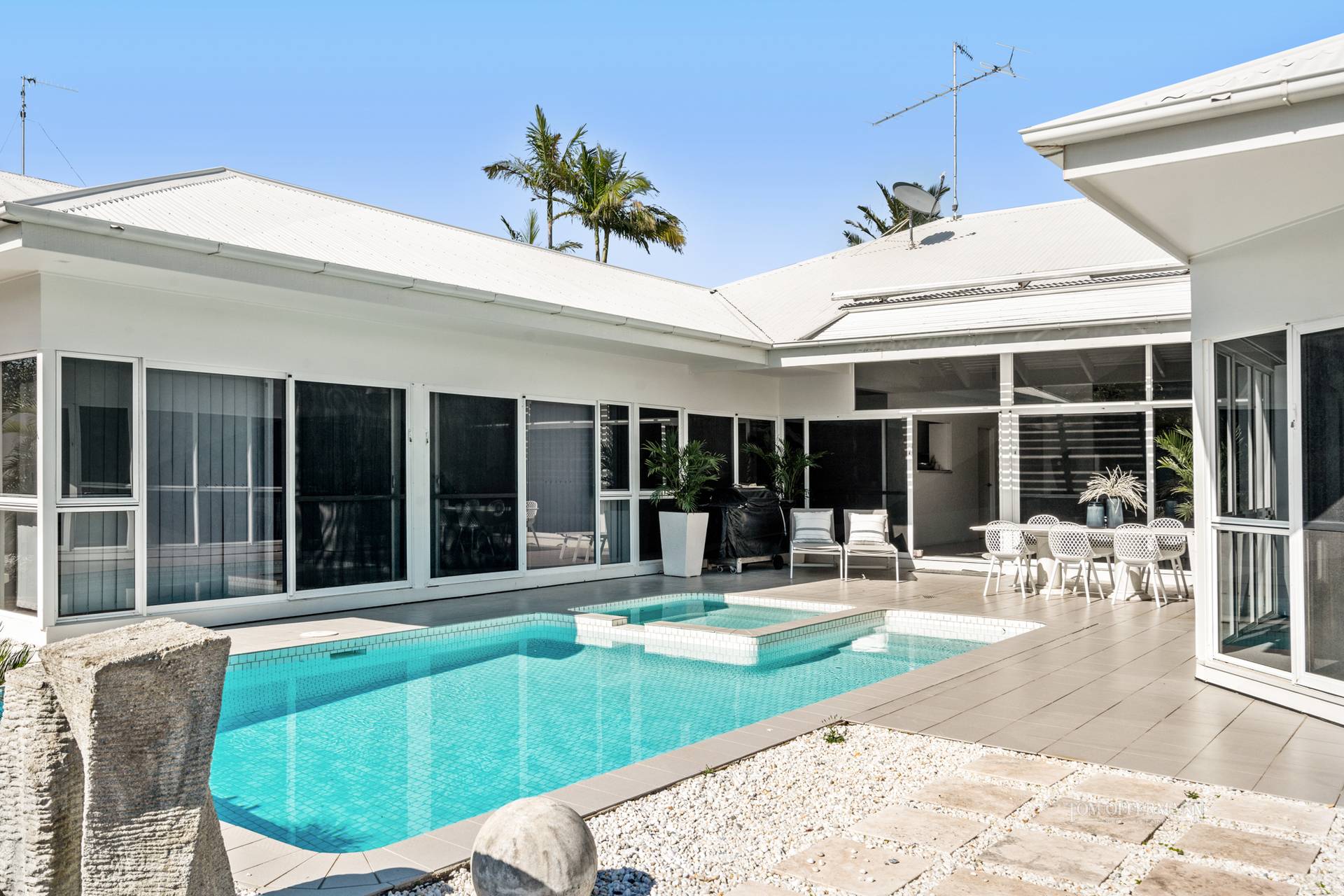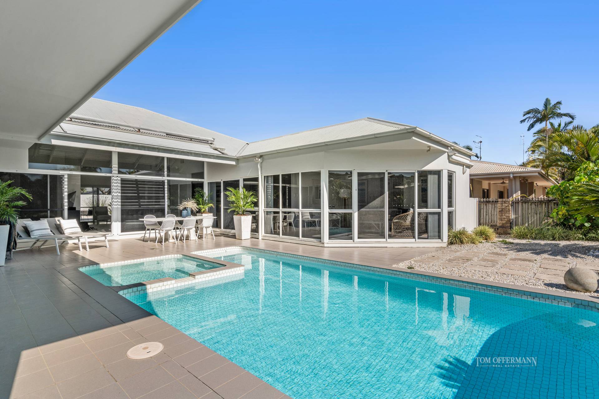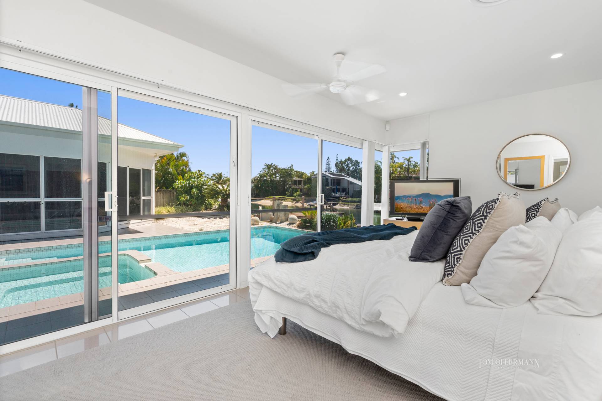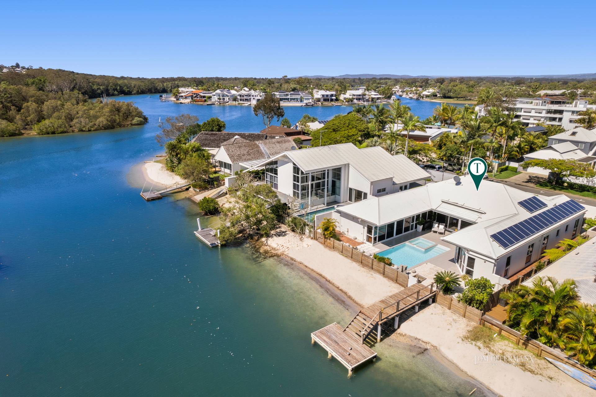 Boasting a privileged quiet cul-de-sac position on a Noosa Sound waterway with 22-metres of beach, expansive jetty, a Palms Springs-inspired massive alfresco terrace, and a dazzling sun-splashed pool. Everything really is here in buckets and spades to maximise life in the sub-tropics. Just bring your boat and the family.