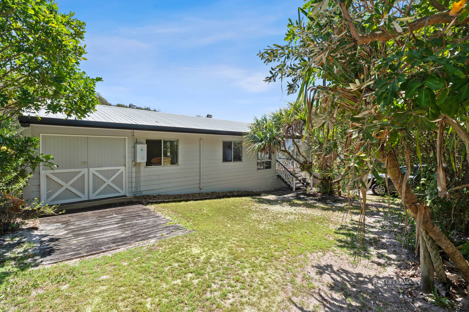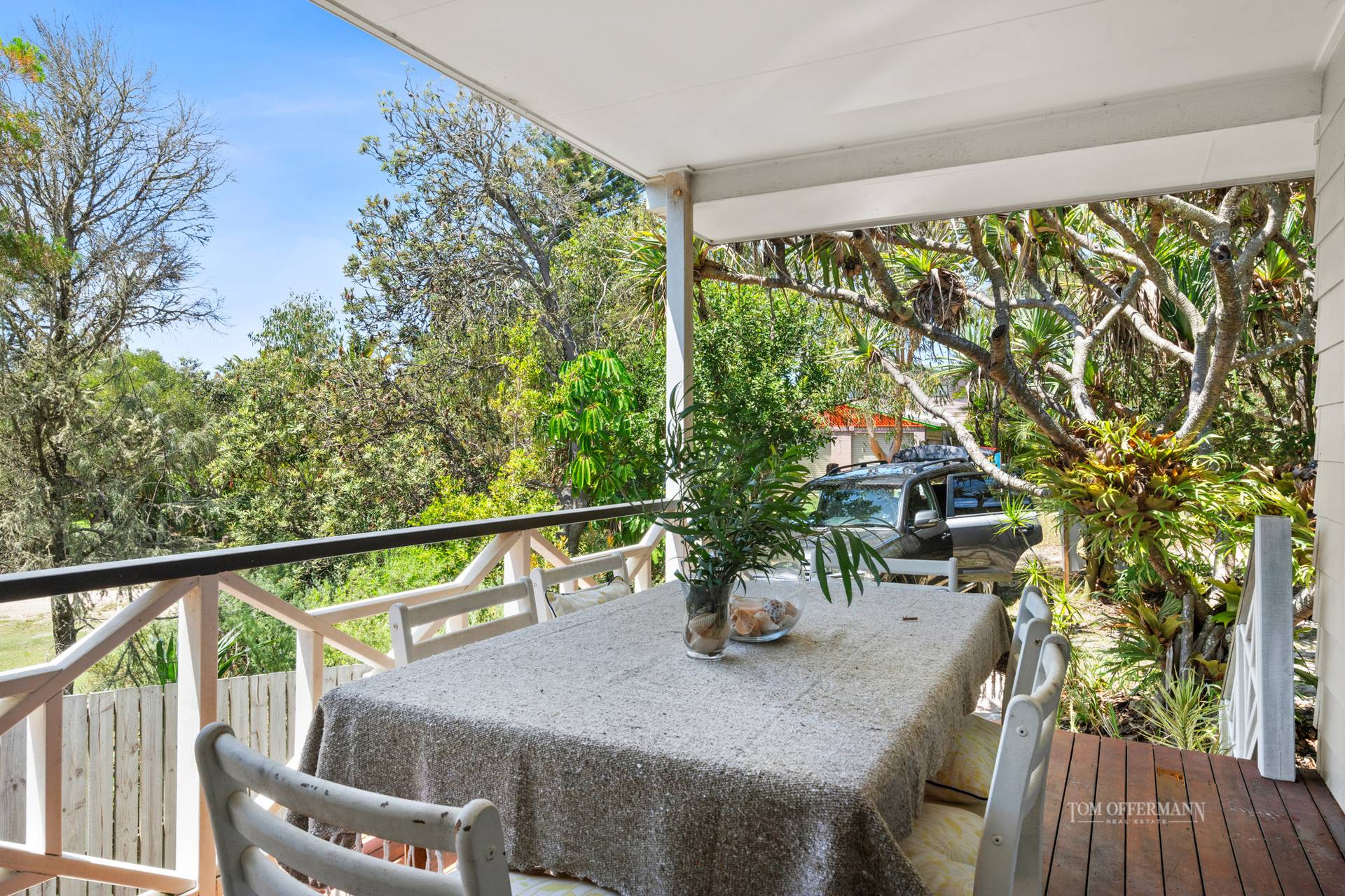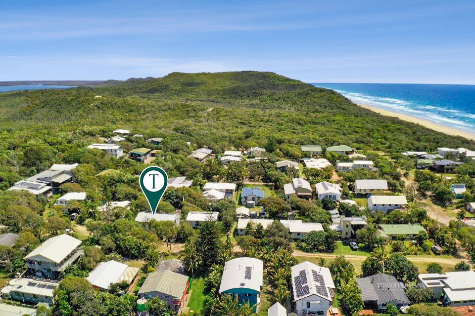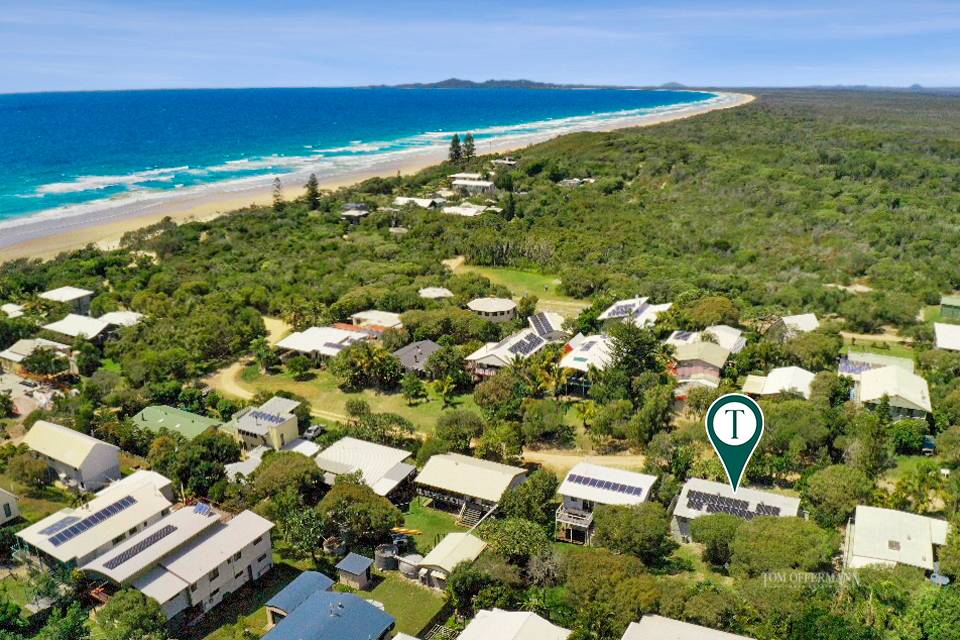Superb, renovated, fully furnished classic Teewah beach shack.100 metres to the beach, leafy elevated block to catch the sea breezes. North facing rear balcony perfect for long lunches and family bbqs. Immaculately presented, just drive up the beach with your surfboard, fishing rods and boardshorts and move in. The house has two bedrooms plus a bunkroom. Substantial tank water plus a bore. Split system air conditioning. Solar panels plus mains power. Large cement block workshop in the back yard.