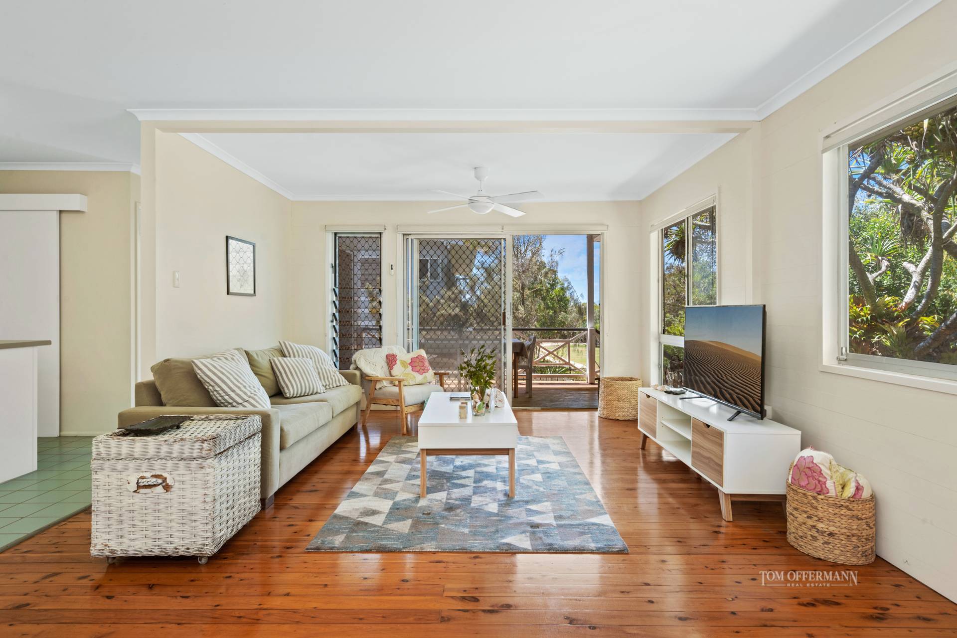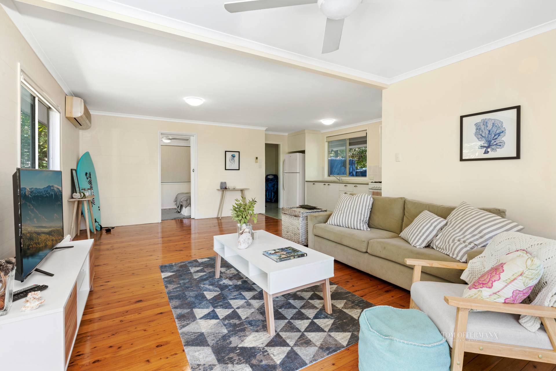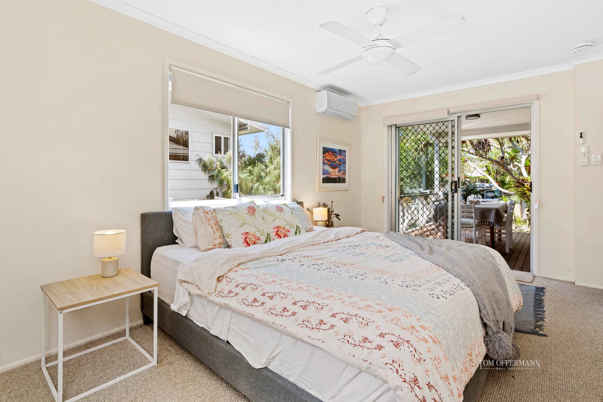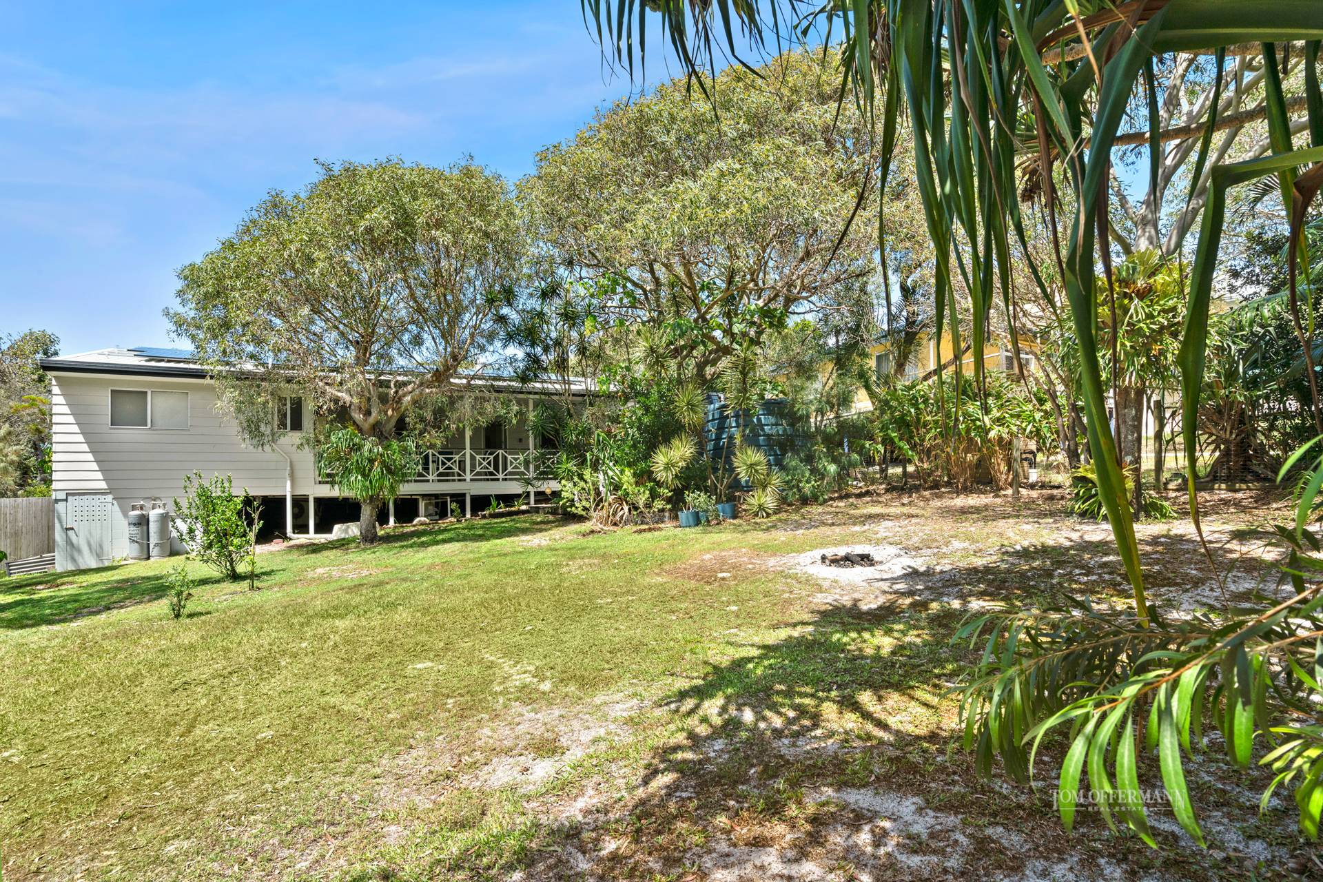 Superb, renovated, fully furnished classic Teewah beach shack.100 metres to the beach, leafy elevated block to catch the sea breezes. North facing rear balcony perfect for long lunches and family bbqs. Immaculately presented, just drive up the beach with your surfboard, fishing rods and boardshorts and move in. The house has two bedrooms plus a bunkroom. Substantial tank water plus a bore. Split system air conditioning. Solar panels plus mains power. Large cement block workshop in the back yard.