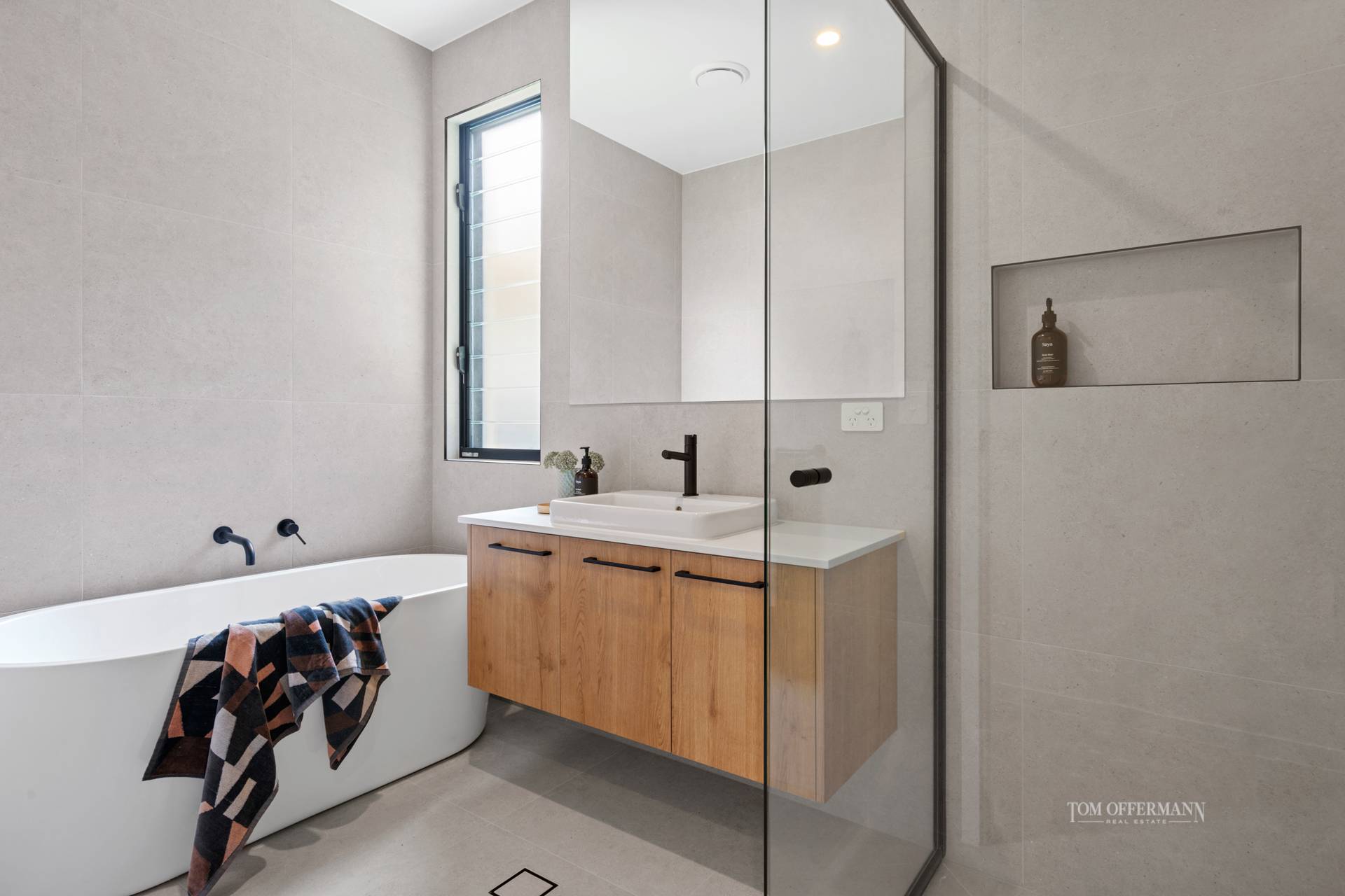 First impressions, it radiates contemporary flair and scale. Open the timber and glass door, appreciate the serene environment, high ceilings, premium-grade finishes and the generosity of spaces with emphasis on the on-trend monochromatic palette of muted greys, black and white. This is the perfect canvas for those driven by a desire to add their 'look' and enhance livability for the family to relax and enjoy year-round.