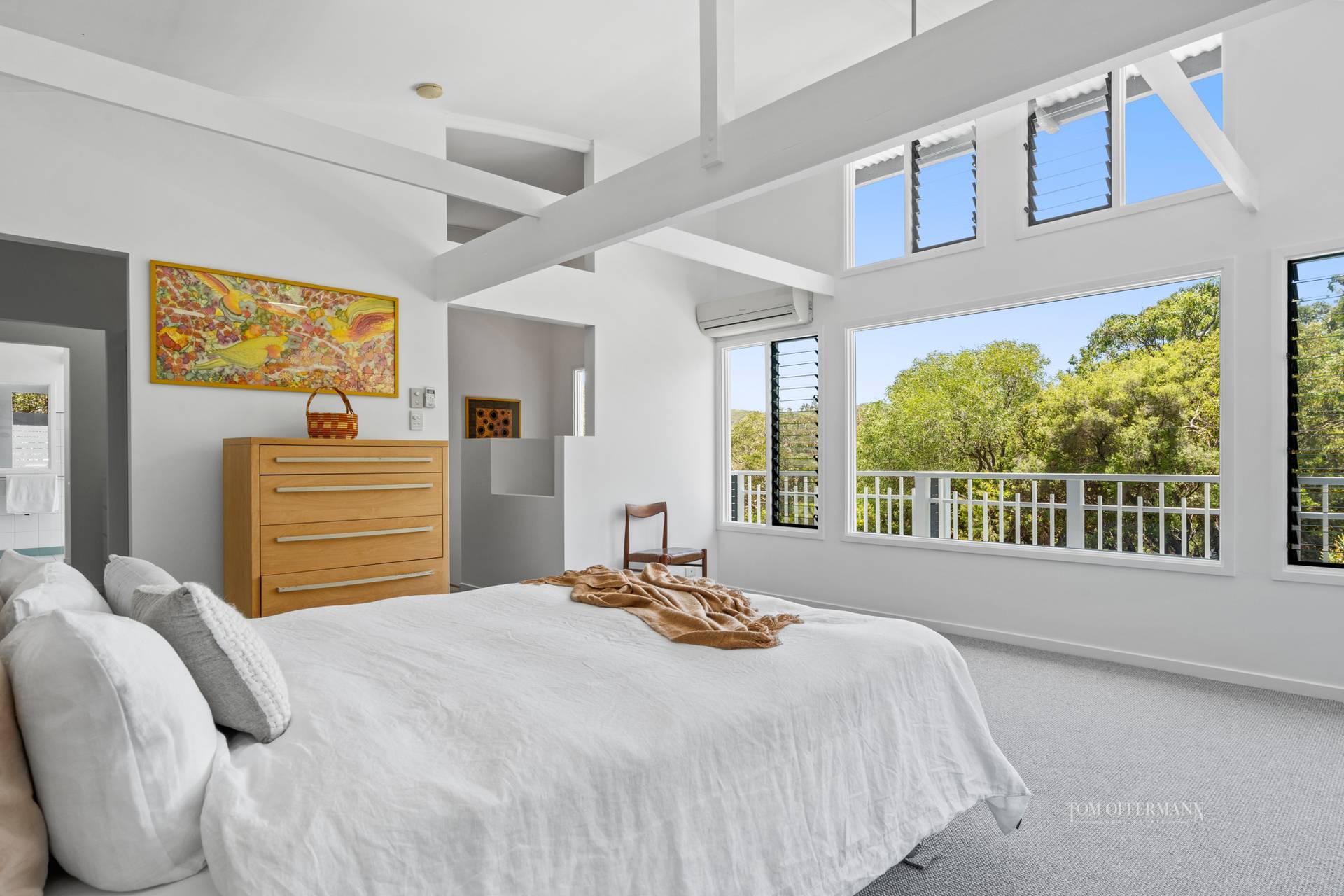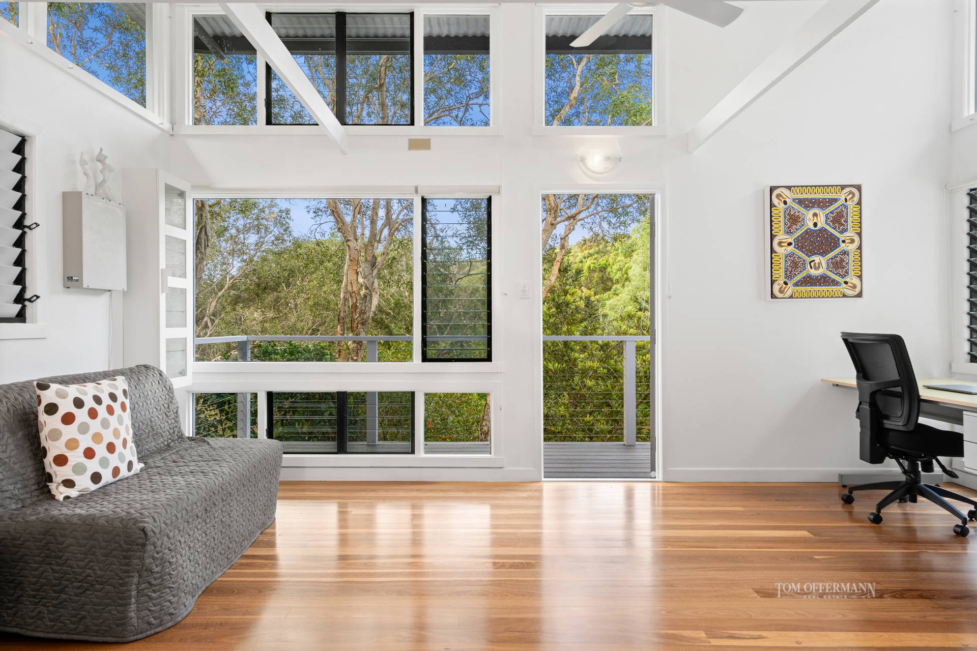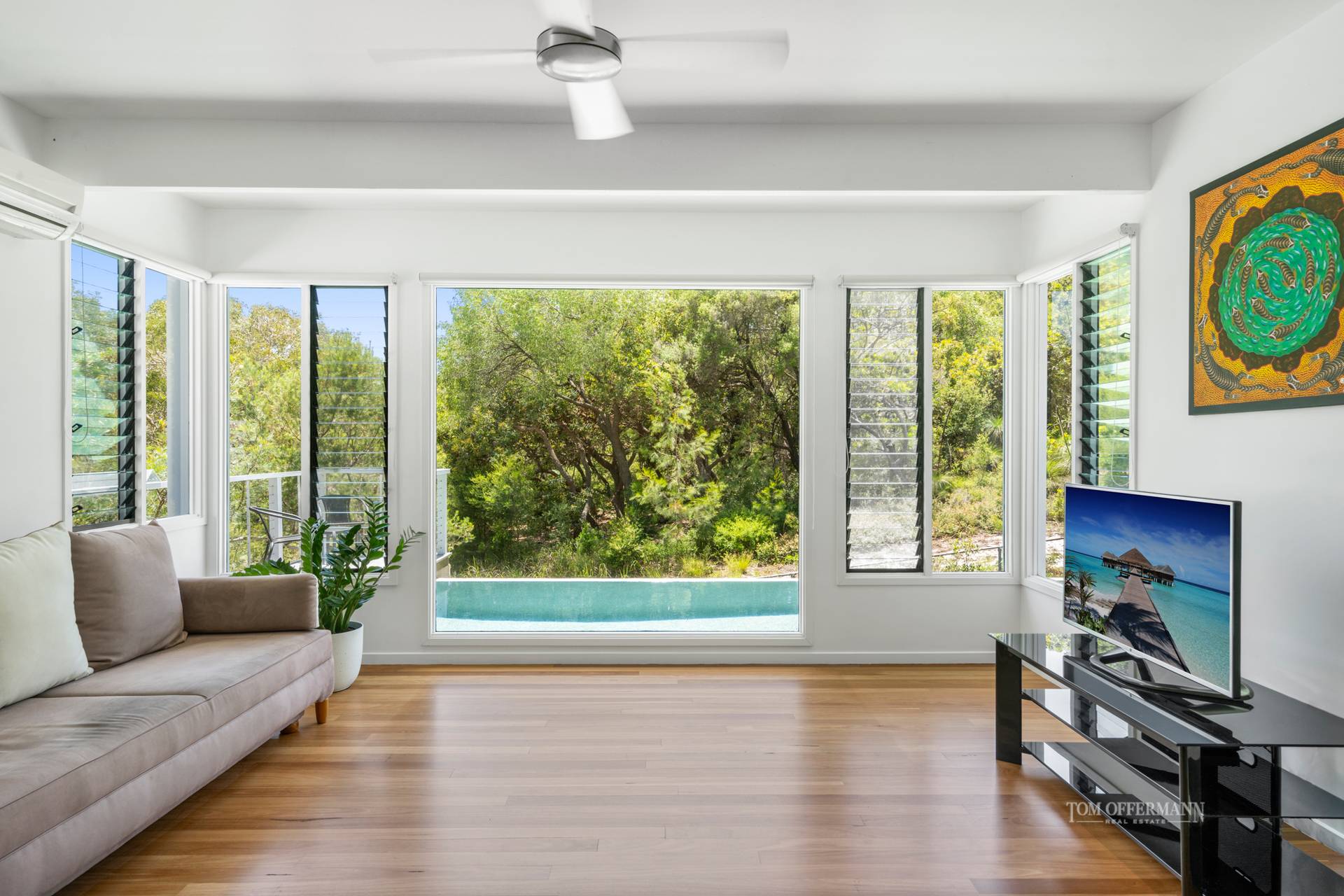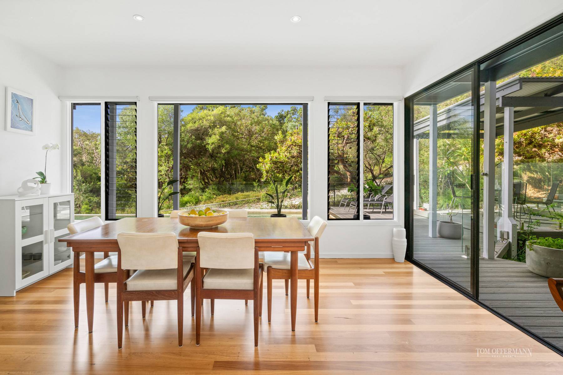 "With a large parcel of land plus a versatile floor plan with possibly three living options," comment Tom Offermann Real Estate agents Roark Walsh and Tiffany Wilson, "clever use of terraces bringing the outside in, plus plenty of room to entertain, this residence is the essence of an extremely laid-back beachy lifestyle, and it's peaceful, private location is perfection, especially when the 'back garden' is the spectacular Noosa National Park.