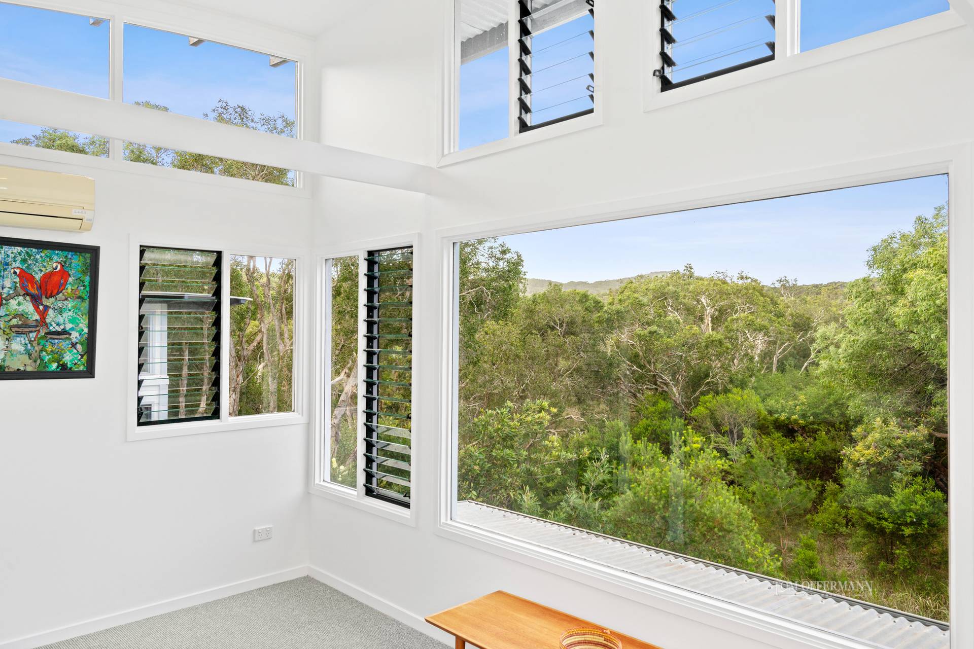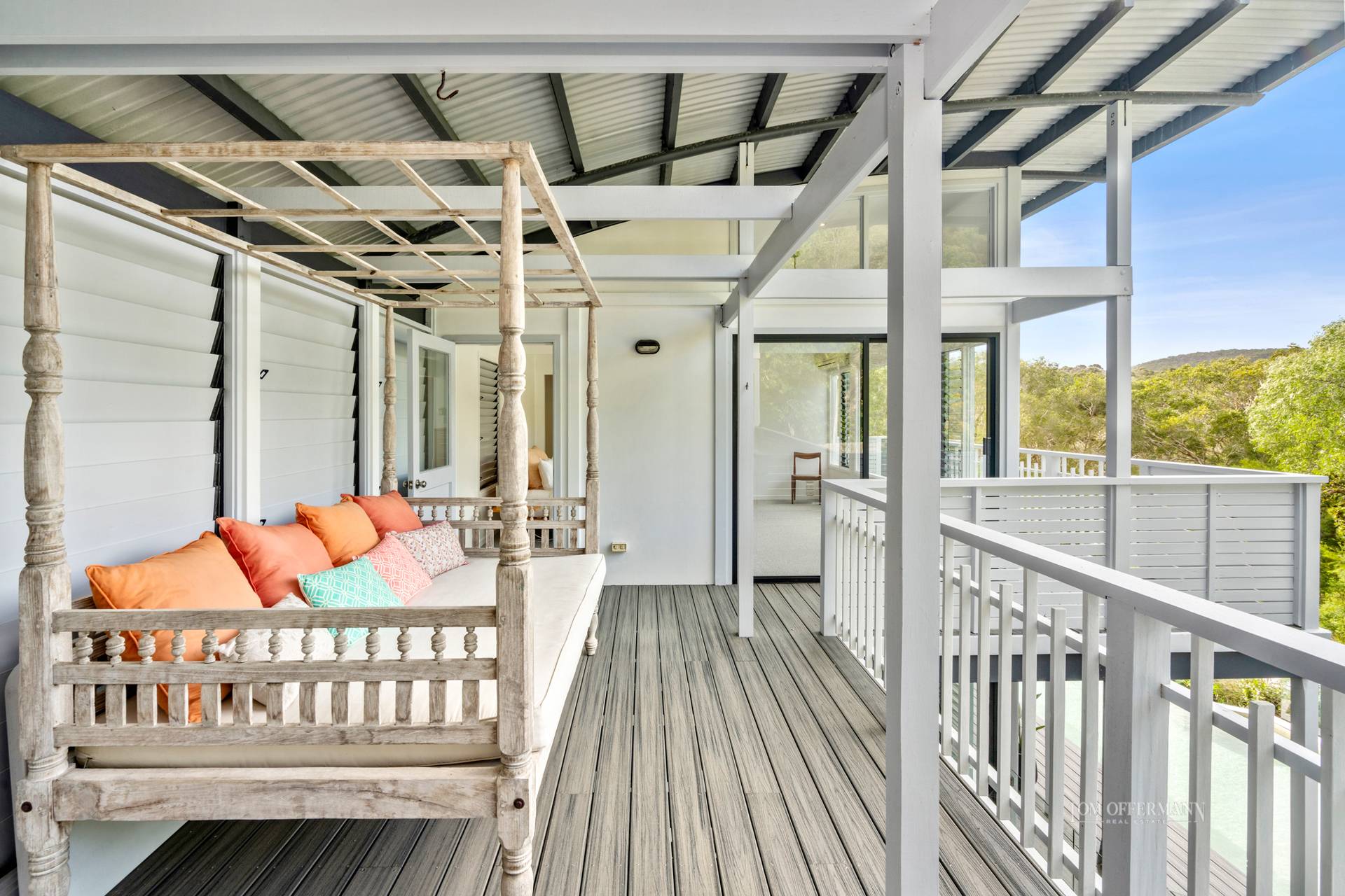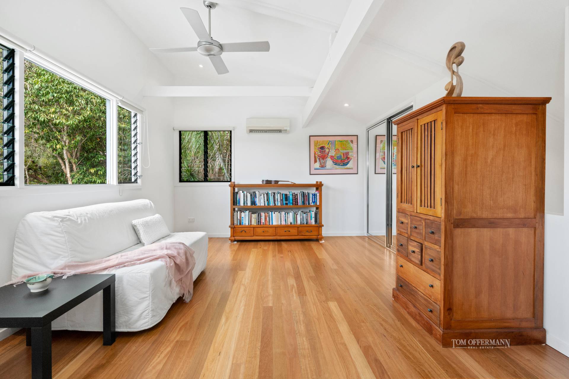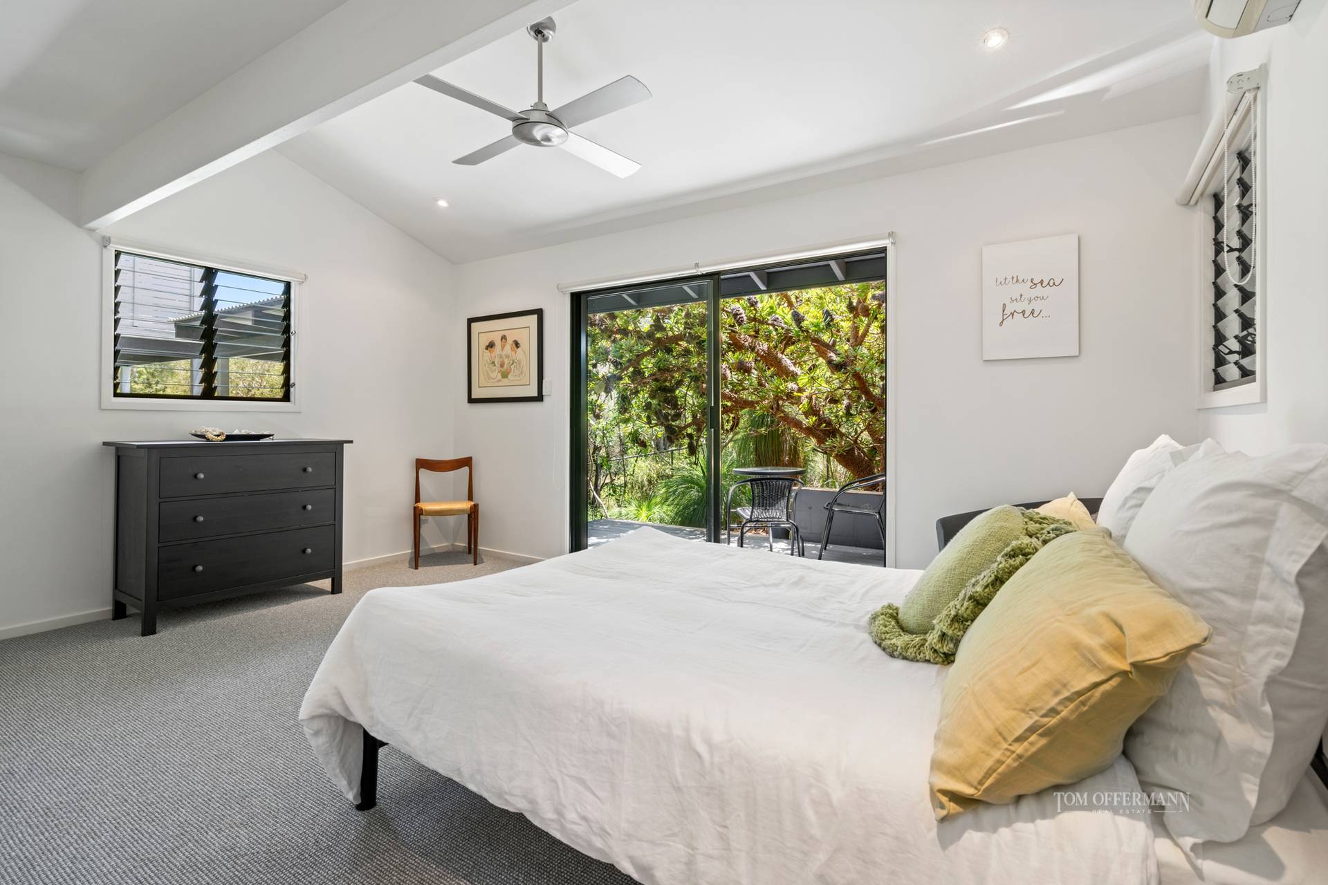 "With a large parcel of land plus a versatile floor plan with possibly three living options," comment Tom Offermann Real Estate agents Roark Walsh and Tiffany Wilson, "clever use of terraces bringing the outside in, plus plenty of room to entertain, this residence is the essence of an extremely laid-back beachy lifestyle, and it's peaceful, private location is perfection, especially when the 'back garden' is the spectacular Noosa National Park.