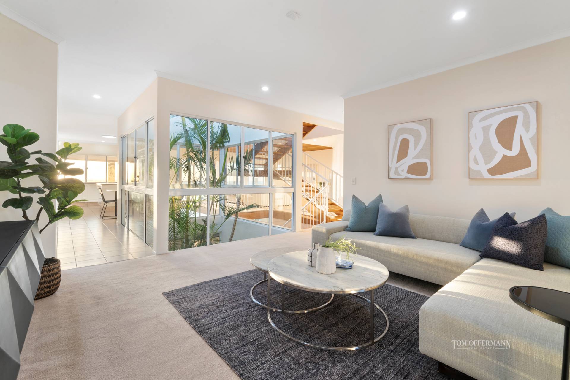 Tropical banksias and pandanus complement the natural lush surrounds. The residence, appearing somewhat understated from the street, has a sandstone walkway and charming glass brick features. Step inside for a quantum leap forward.