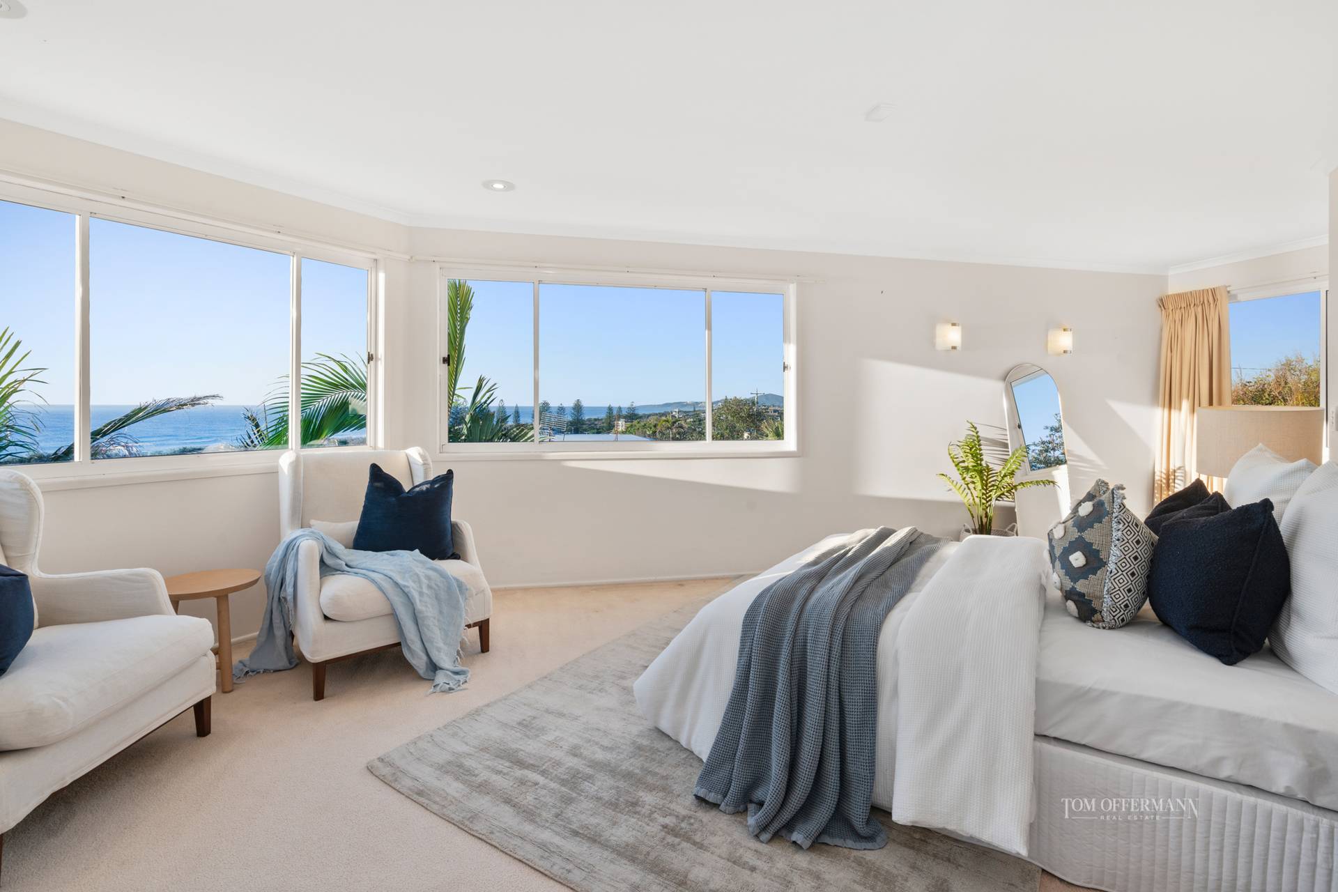 Slide away the glass doors which stretch the width of the residence and indoors coalesces with the expansive undercover terrace, looking over the garden to those uninterrupted views albeit a sparkling symphony of ocean blue. Alternatively unwind and retreat to a courtyard on the western side off the lounge, where the sunsets are guaranteed to be sublime.