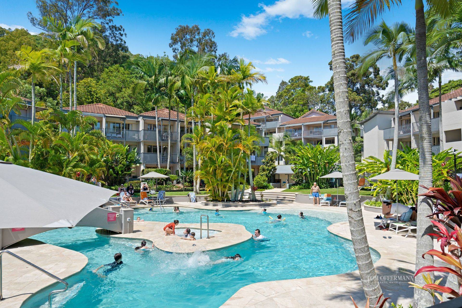 wading pool, two spas and barbeque area, all surrounded by lush palm-