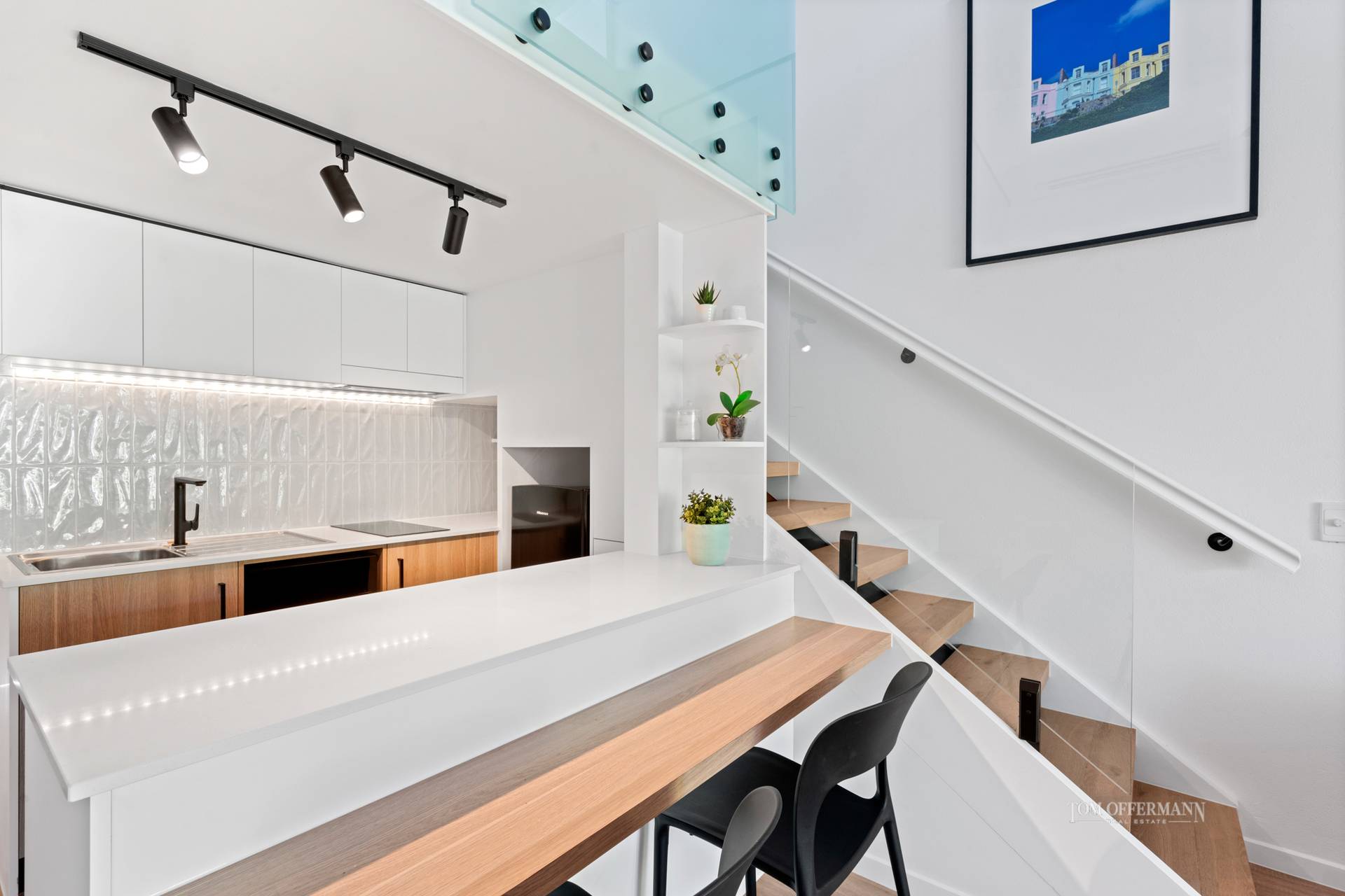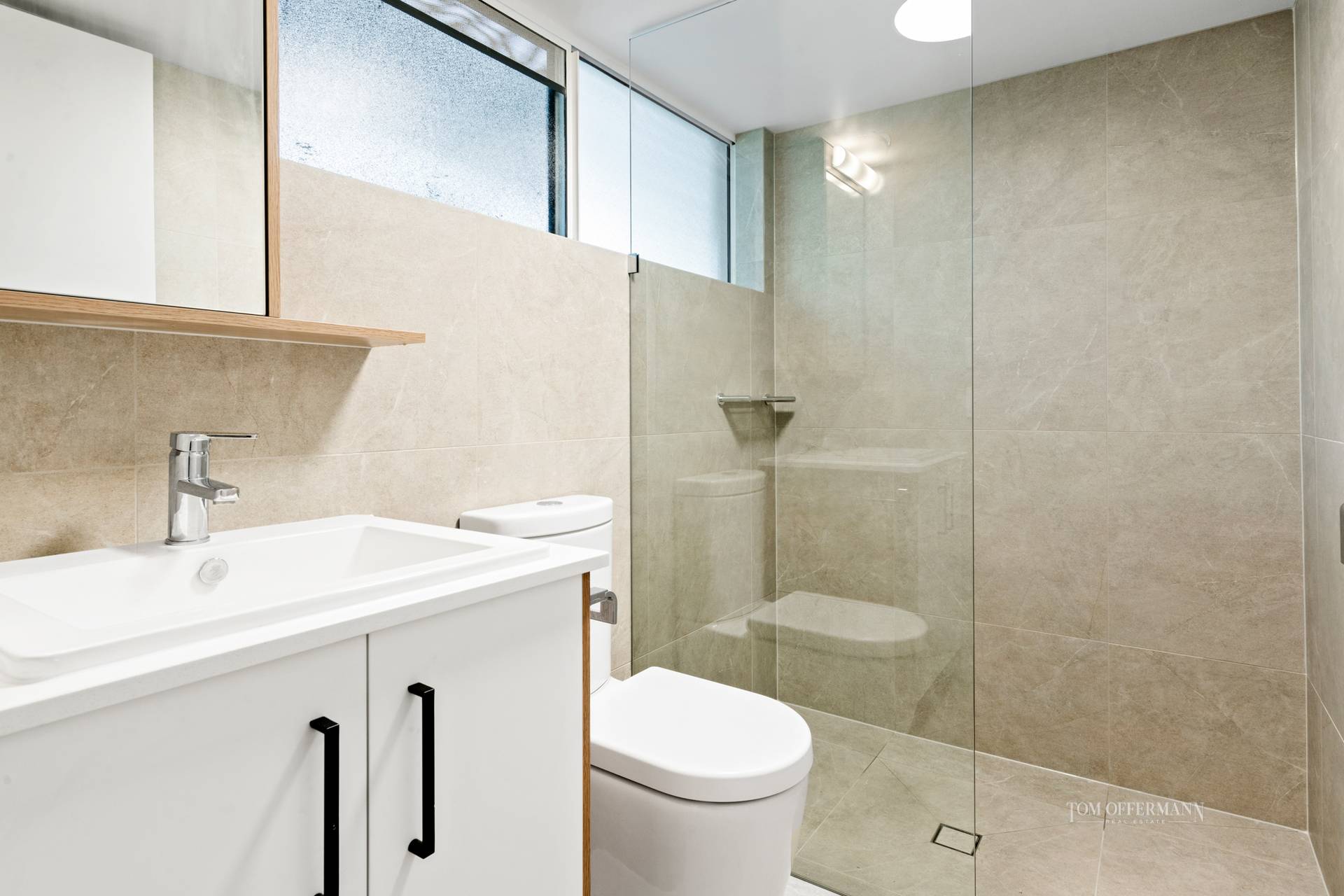 - About: full renovation recent completion; fully self-contained w private furnished terrace near pool; lime-washed hued flooring; contemporary artworks & mirror; charcoal lounge/sofa bed; smart TV; aircon/fans/auto blinds; louvres/sliders to terrace; mezzanine king bedroom with glass half wall to garden view + wall of built-in robes; bathroom with muted grey tiles & walk-in shower