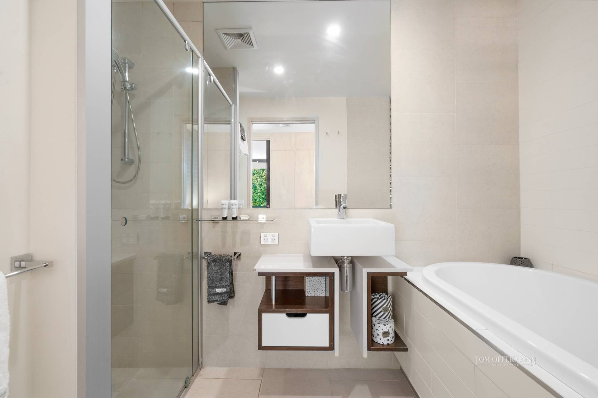 - About: lift access; mid-level; refurbished; single designated garage space; ducted aircon/fans; master bedroom w ensuite incl bath + walk-in robe; laundry incl washing machine & dryer; less than 1 min walk to the heated 25m lap pool