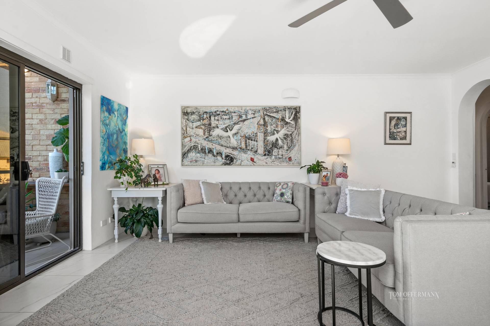 Step inside and be immediately impressed with the light-drenched albeit filtered, breezy interior thanks to lots of windows and sliding doors, and the recent cool luxe renovation using a palette of pretty blues and creamy whites throughout.