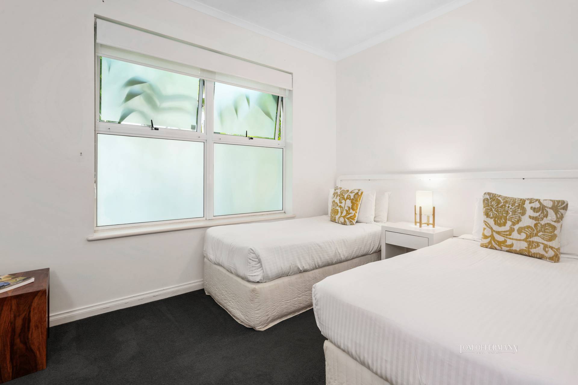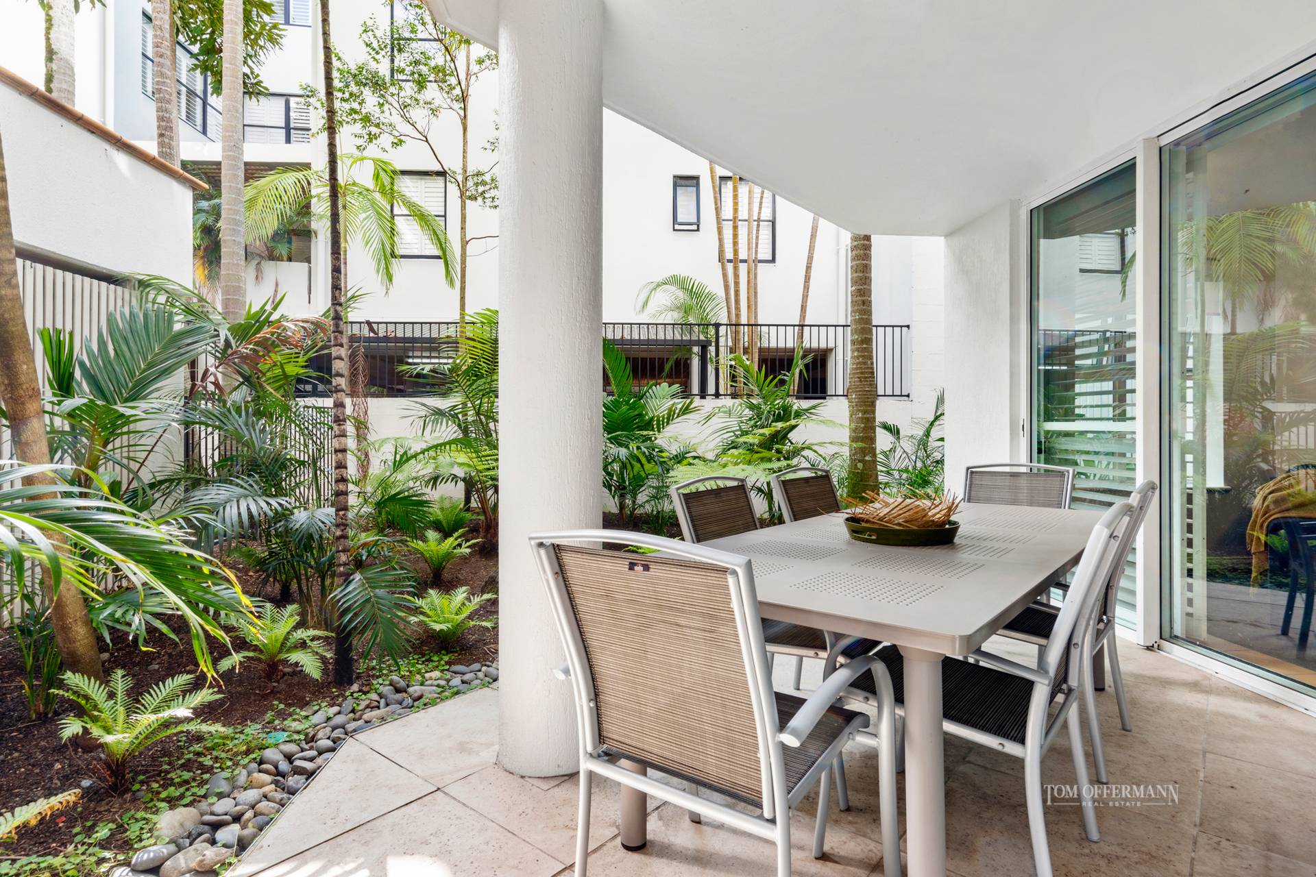 Whether it is you or your guests, apartment 13 The Emerald makes holidays in paradise all about relaxation, comfort and convenience. Stepping inside the single level ground floor apartment, the hallway leads to a full complement galley kitchen that connects with a generous open plan living and dining space that seamlessly flows to an undercover entertaining terrace and private enclosed courtyard where established greenery and the sound of a nearby cascading water feature provides a relaxing and tranquil ambience.