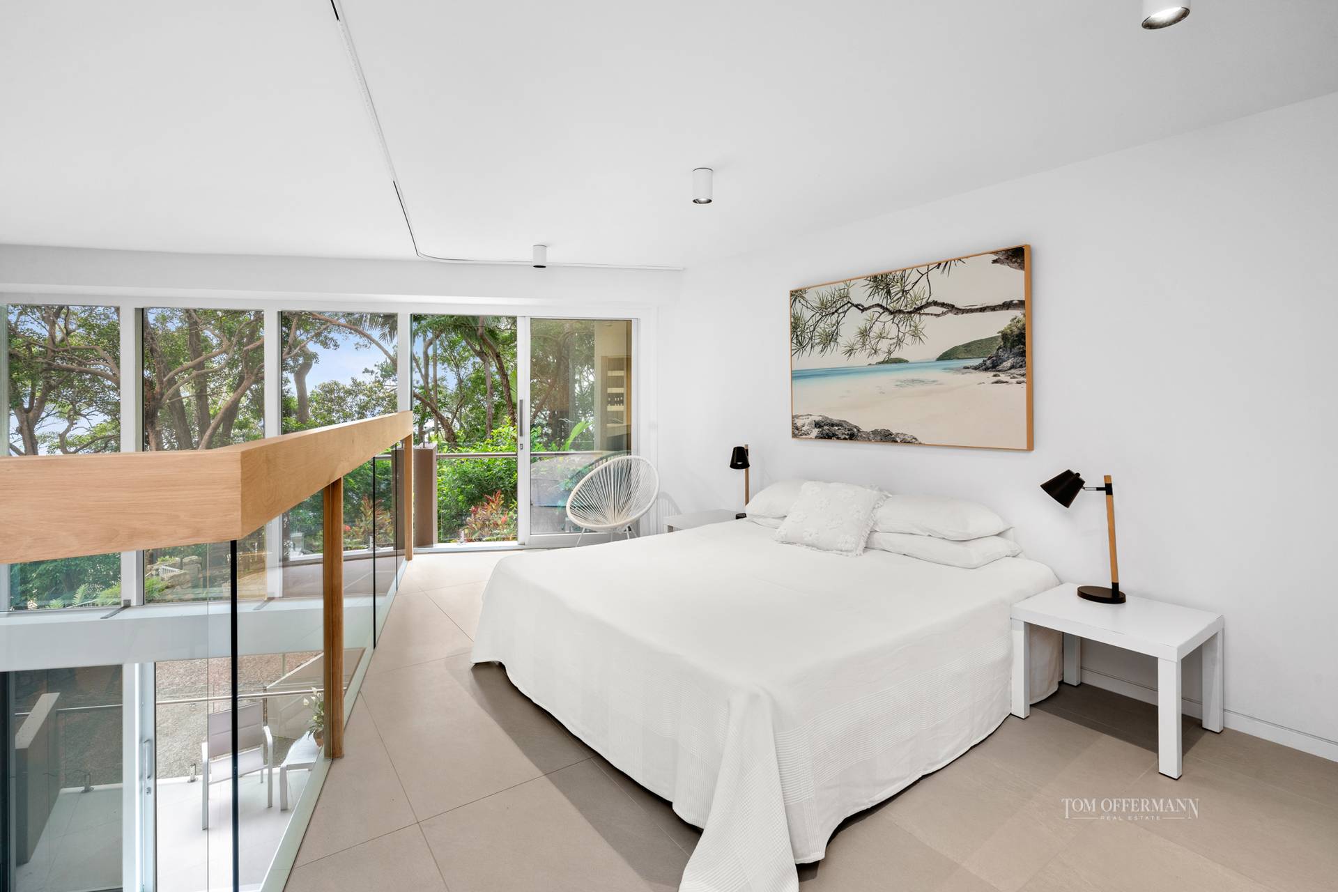 When it comes to bliss time the north-facing king master suite opens to a covered balcony. It has sparkling views of Little Cove Beach, Laguna Bay and beyond to the Coloured Sands. Custom cabinetry takes care of wardrobe space also there's a dedicated space to stay 'connected'. A very chic ensuite has double, Corian-topped vanities with mirror-fronted cabinets, plus walk-in, drencher shower.