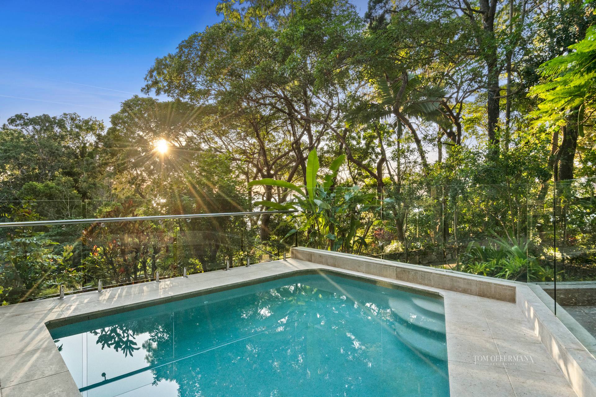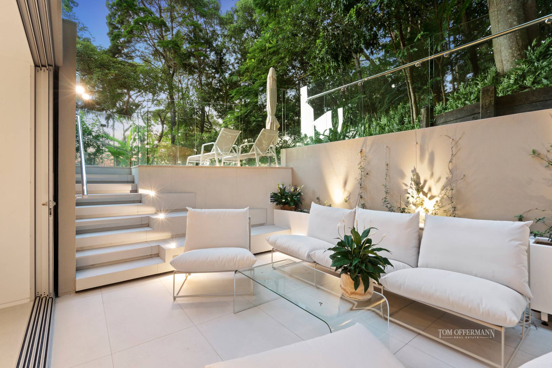 Thanks to banks of 'disappearing' glass sliders, indoors coalesces to out on the wide east-side entertaining terrace, with white sensor awning, integrated outdoor kitchen with barbeque and drinks fridge. With no neighbours, privacy prevails with a jasmine-espaliered wall, and above it features nature's 'curtain', which is in fact a backdrop of the rainforest. No doubt koala spotting and enjoying bird-song choruses will become favourite pastimes.