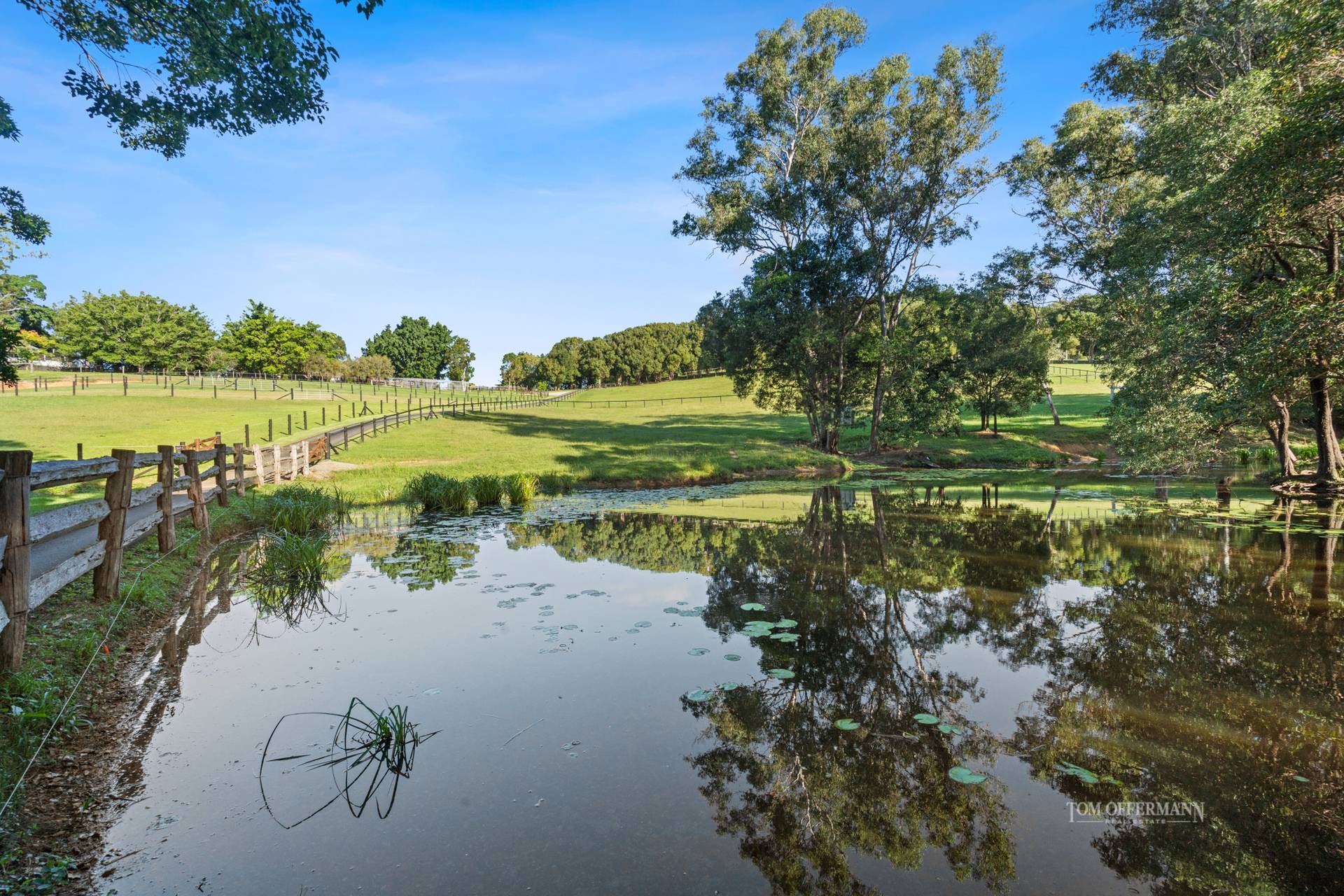 - Paddocks: 13 including 2 spring fed dams with red claw lobster & fish; 1 jetty; cattle yards & crush; post & rail + new bounce back horse fencing to 12 pasture improved paddocks; electric perimeter fencing to entire property; all paddocks & stables with auto self-filling water troughs