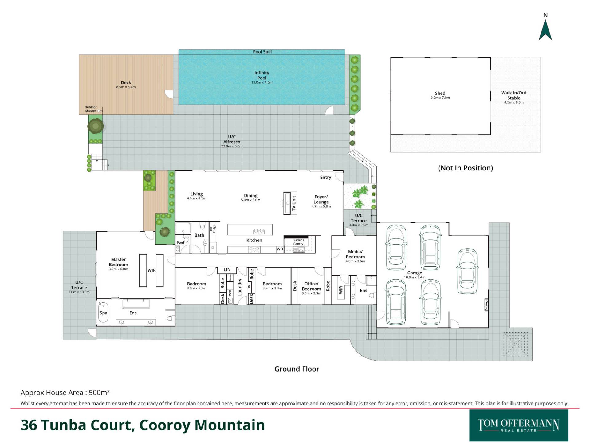 - Pool 15m North-facing heated infinity with smooth glass surface; views to Tinbeerwah lookout