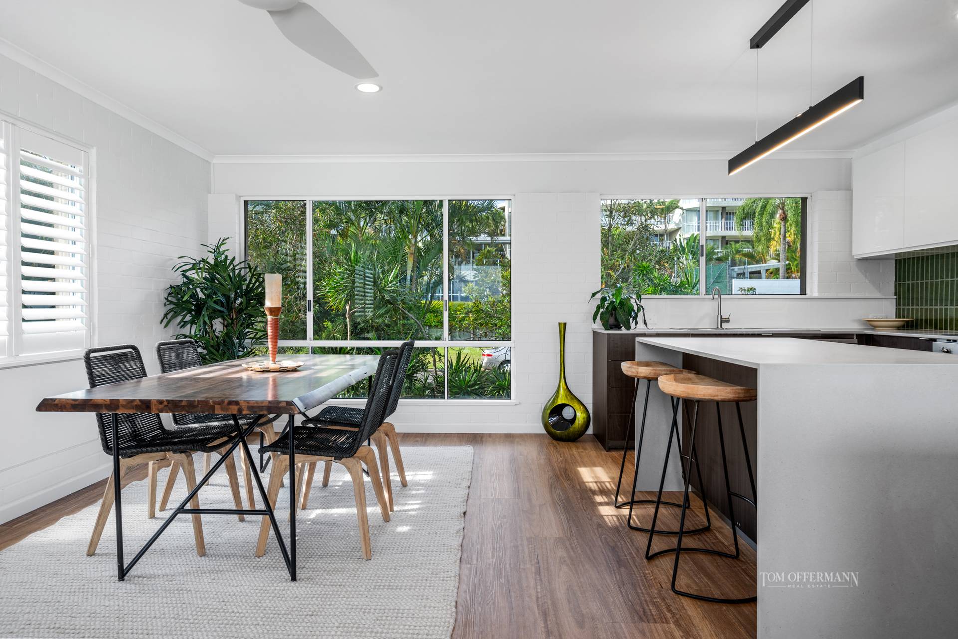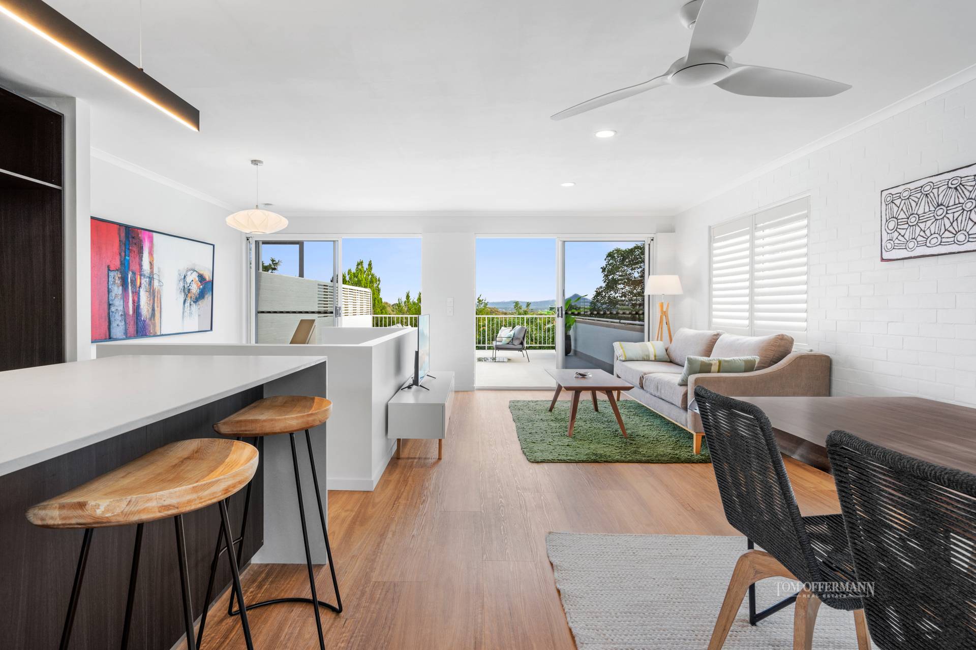 When it comes to bonuses, the upper level of the totally renovated apartment hits the spot in every respect, especially views over the surrounding verdant landscape, the Noosa Hinterland and stunning sunsets.