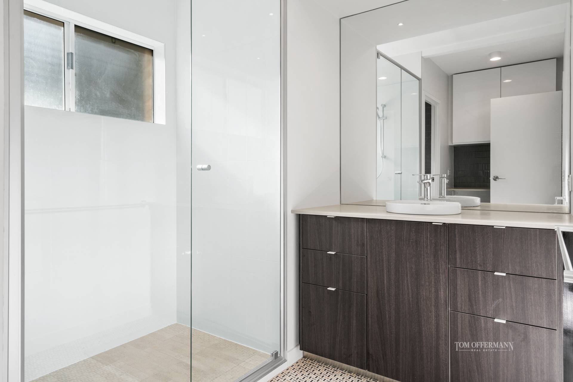 The on-trend bathroom has a hideaway laundry and separate toilet.