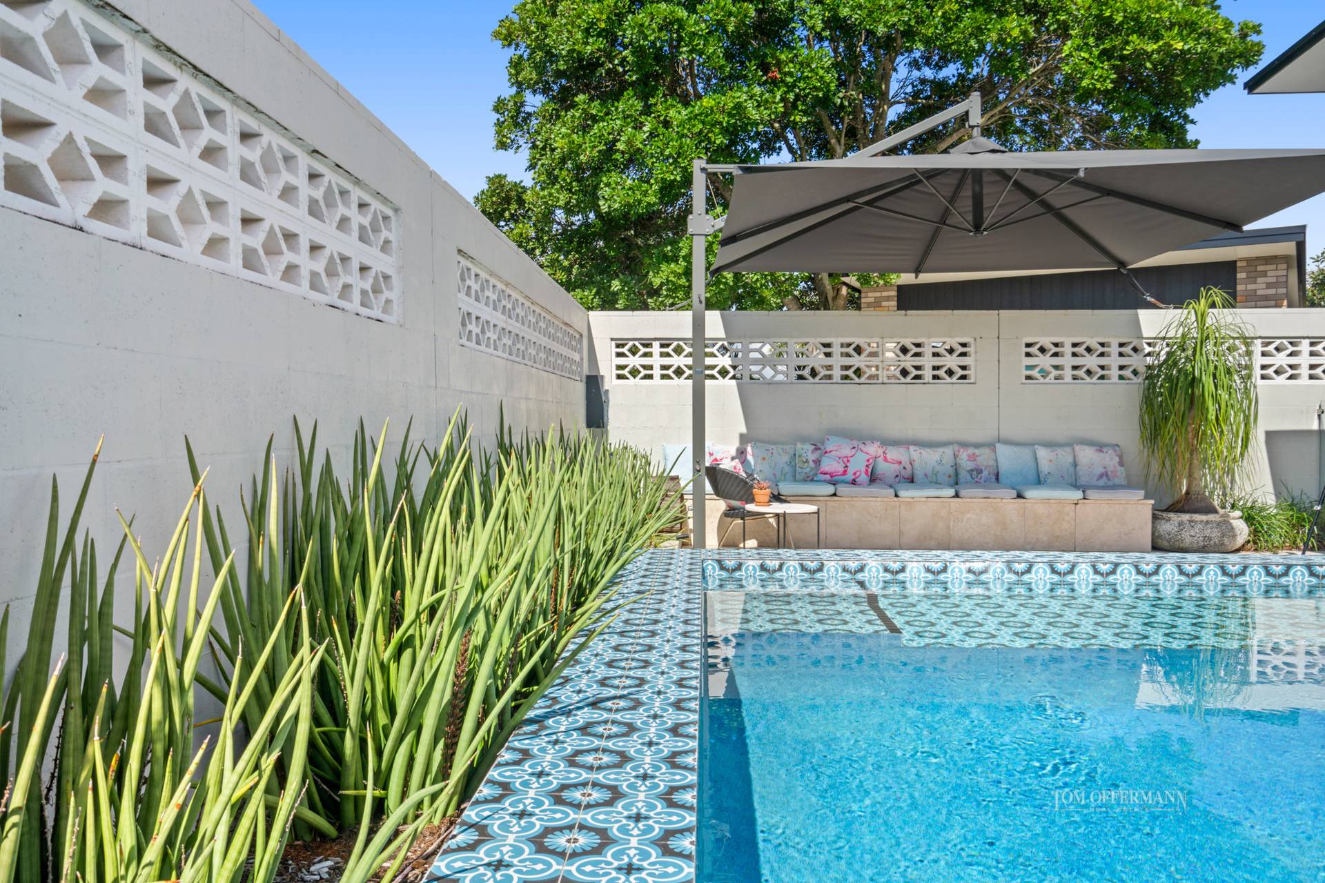 Step inside. The serenity is palpable, yet it immediately cultivates a sunny state of mind, with each generous space having a super-chic overlay of super chic 'Palm Springs' style of mid-century modernism.