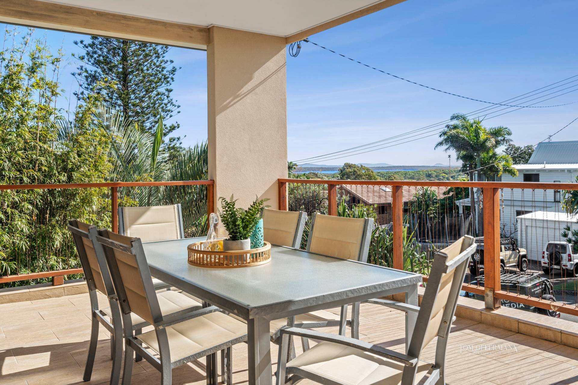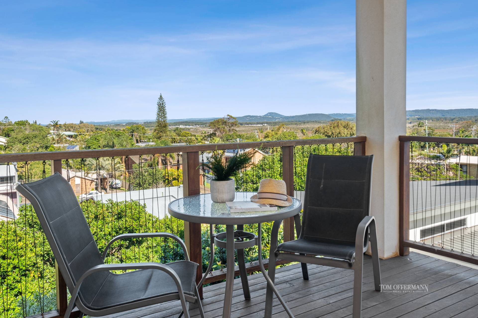 Upstairs you find the sprawling open plan living and dining space that spills directly out onto a generous covered north facing balcony. It's the perfect vantage point to capture the sunshine and take in sunshine and the Lake Weyba and ocean views.