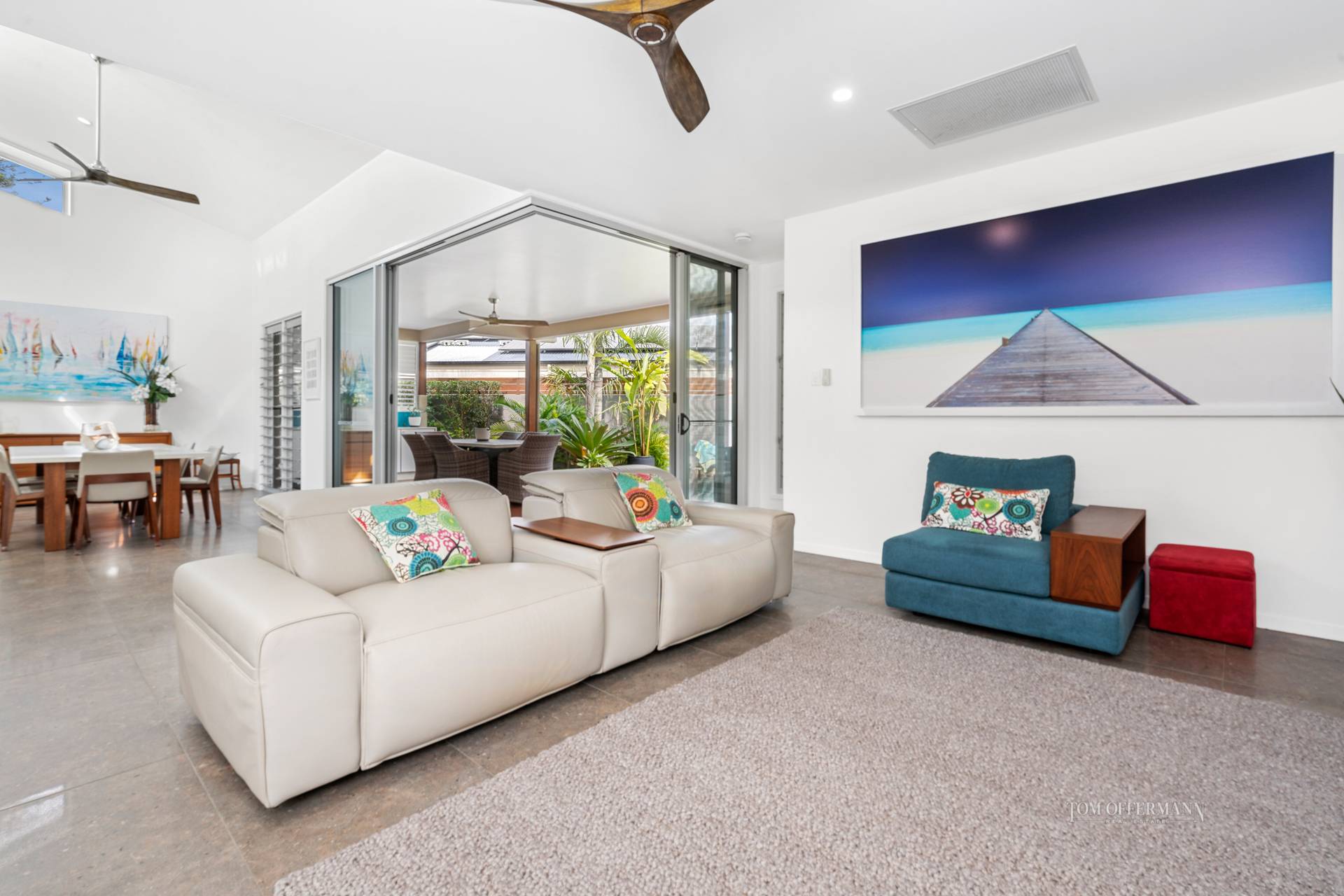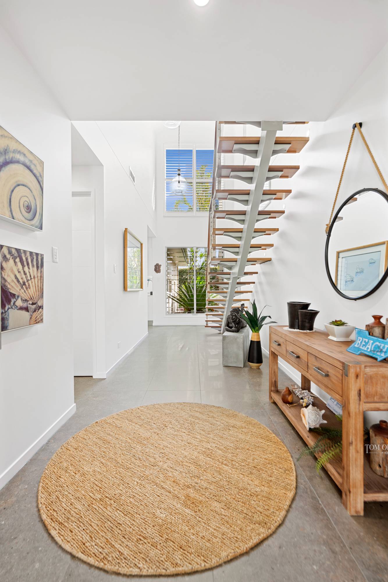 Worth noting especially when boys' toys and watercraft are part of coastal living, the triple garage with epoxy flooring has serious storage including a deep recess for say a jet ski also a high ceiling to accommodate a luxury boat such as a 6.4m high boat trailer. Need more? There is also ample off-street parking.