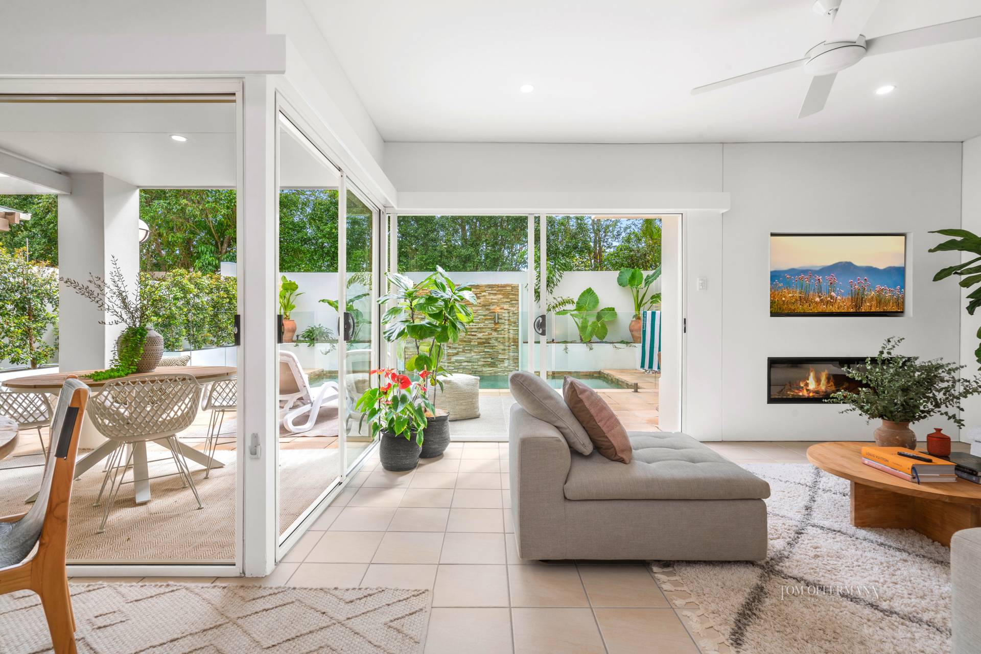 Look left out to the very generous terrace. It spells entertaining to the max. Sliders peel away to the terrace where taking centre stage is a dazzling pool.