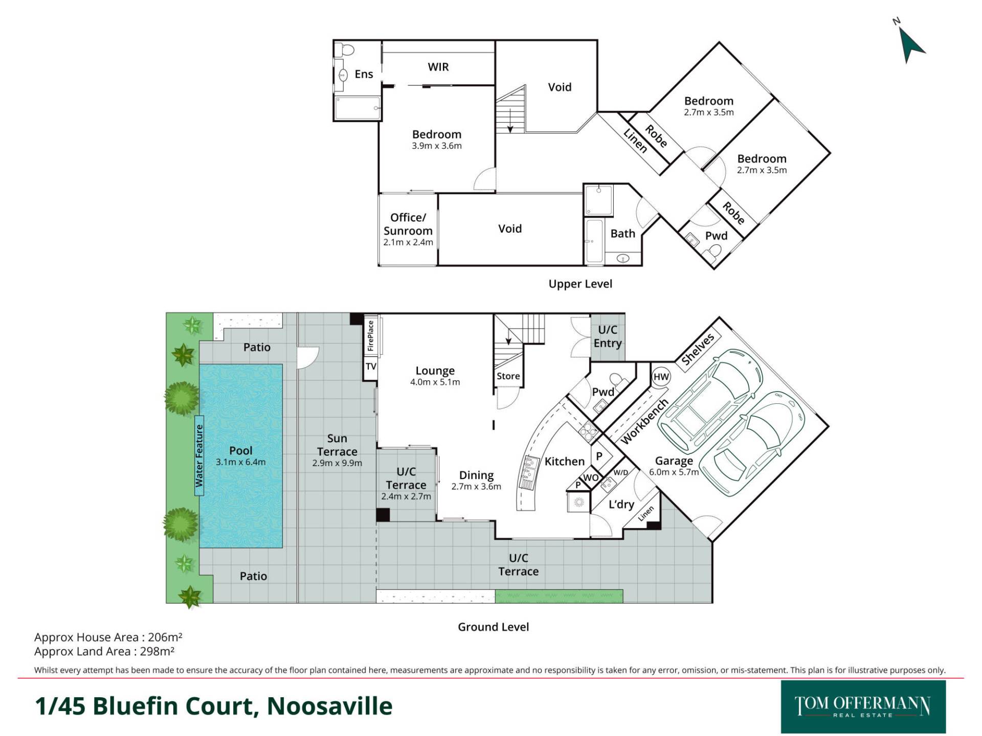 Light filled private oasis; spacious private duplex; functional floor plan; open plan living/dining/kitchen; superb indoor-outdoor living/flow; undercover alfresco; perfect for entertaining; watch the children in the pool from the kitchen; real flame Xl electric fireplace; wall mounted TV; powder room on ground level for guests; high ceilings; cross ventilation; plantation shutters; reverse cycle air conditioners; ceilings fans throughout; ample storage; carpeted upstairs & tiles downstairs; fully equipped kitchen w. Granite bench top, new Bosh oven & hob; new Smeg grill microwave, new F+P French door fridge and freezer, Asko dishwasher; spacious master bedroom with large oak veneer WIR w. hanging rails & drawers, ensuite, enclosed balcony; light filled 2 bedrooms w. built-in robes; guest bathroom w. separate toilet; functional laundry; Security; fully fenced; security gates w. intercom; solid construction; block rendered; insulted; low maintenance landscaped gardens + vertical gardens, established potted plants; automated sprinkler system; 2 car gagrage with internal access + epoxy flooring Location: Flat surroundings; convenient; access the best of Noosaville with great ease; kids/dog play park metres away; walk via council paths to supermarket, amenities, cafes and short stroll to Noosa River precinct with restaurants.