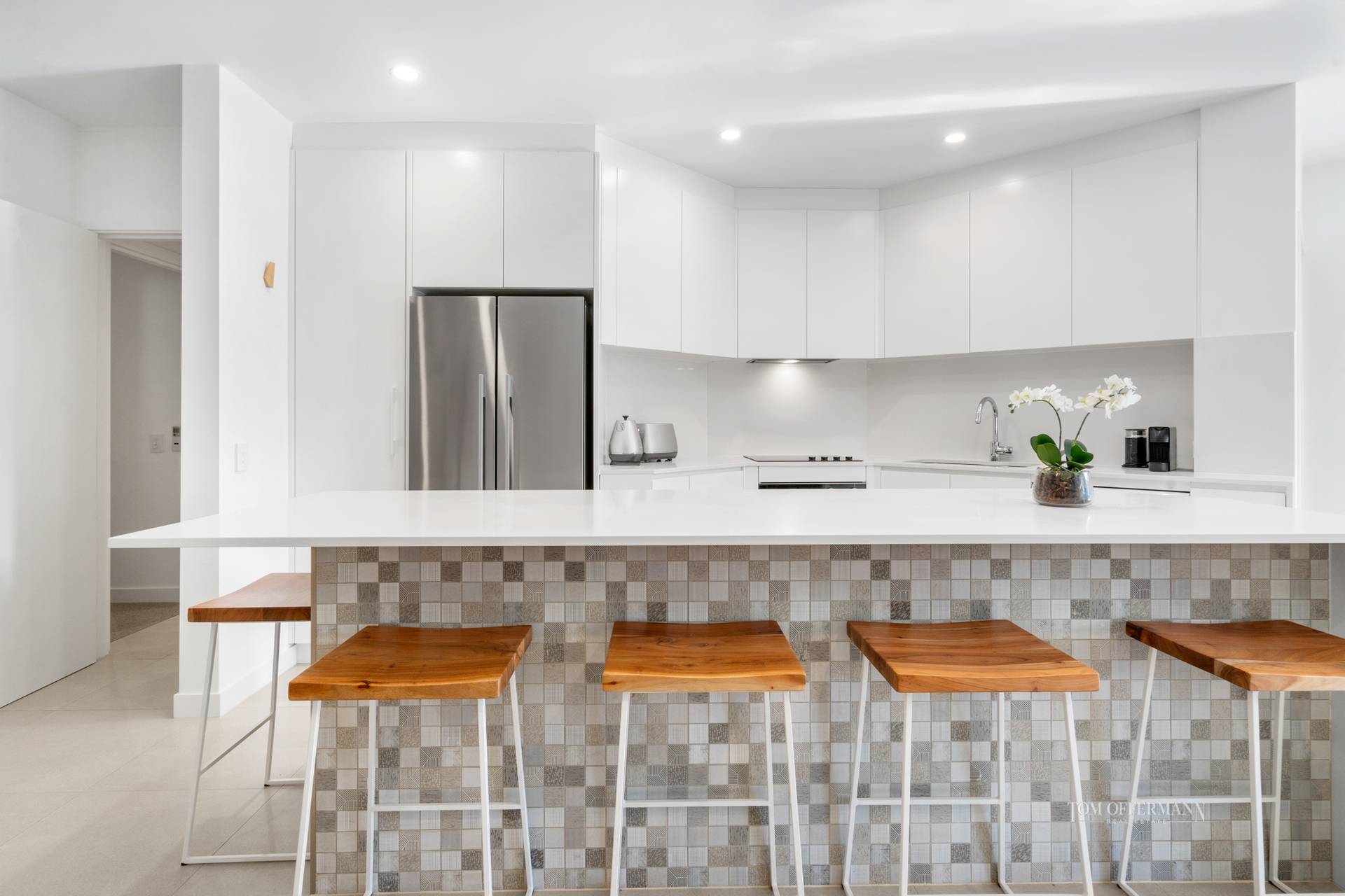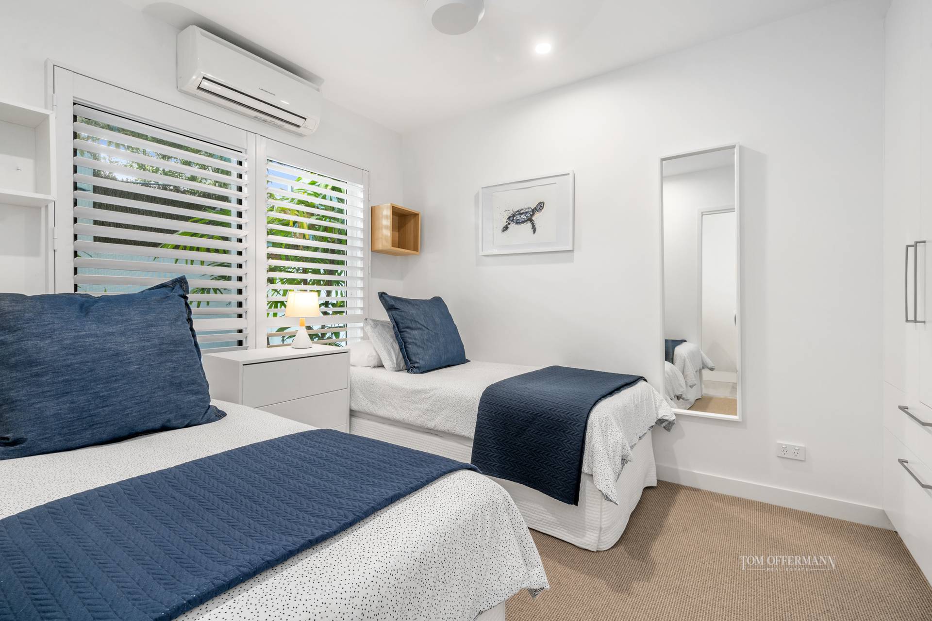 Admire magnificent flame red bougainvillea, the auspicious prized address nestled into the natural topography, a pristine white façade fringed by palms, located only 100-metres to a pathway for Hastings Street, with both Little Cove Beach and the Noosa National Park, almost on the doorstep.