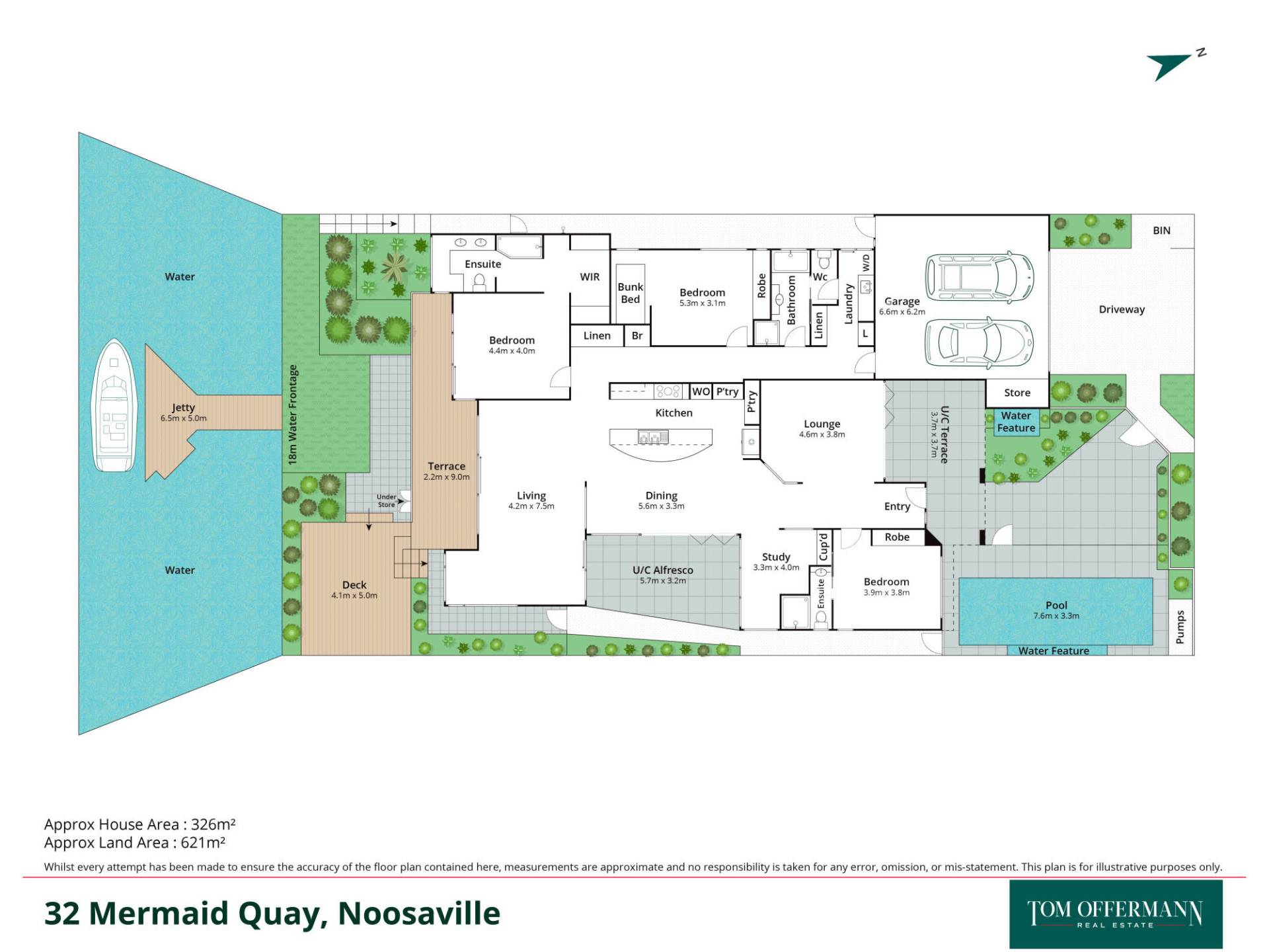 • Waterfrontage: 18m; jetty 6.5m x 5m + pontoon & boat lift