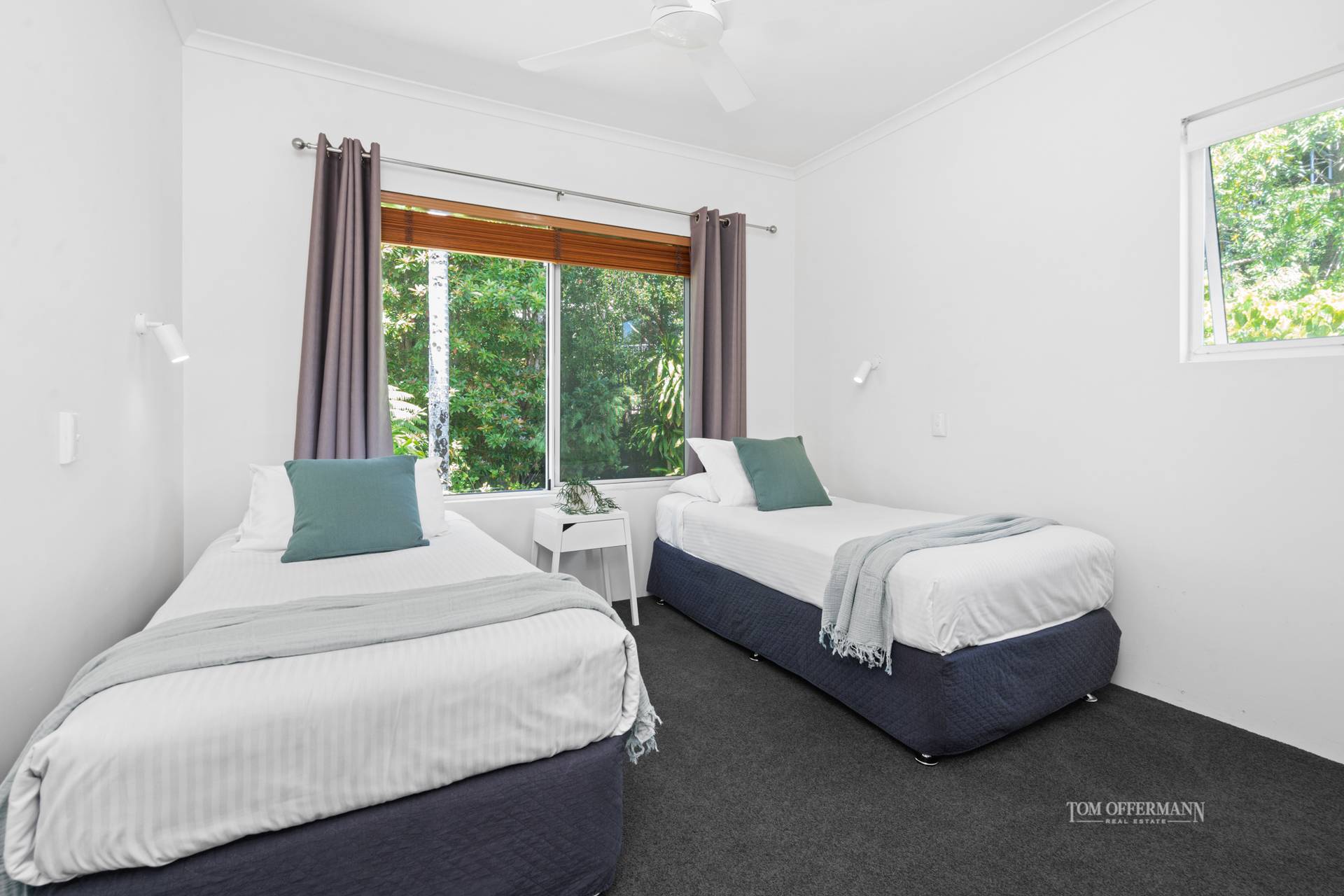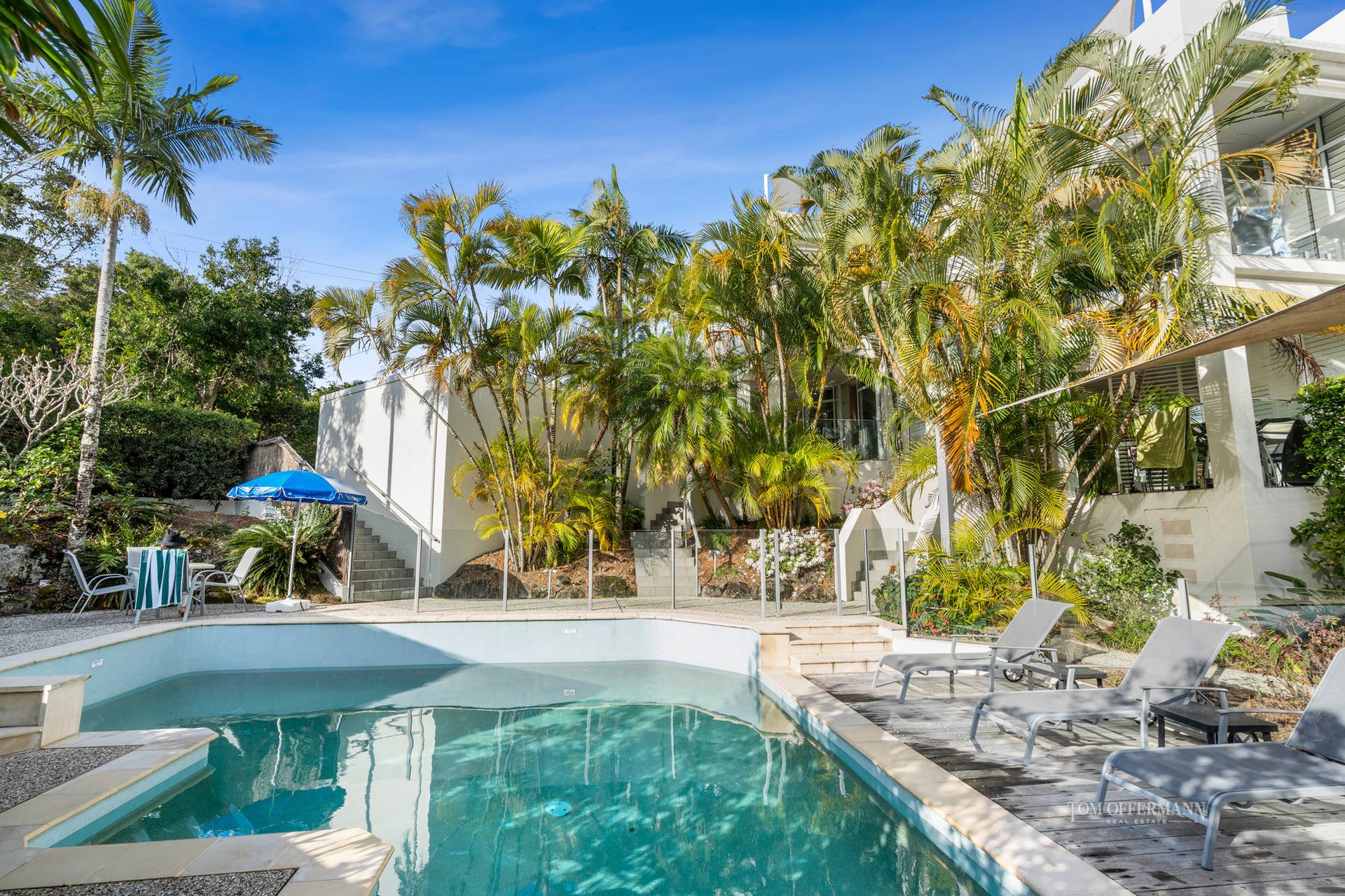 A prized address nestled into the natural topography, a pristine white façade fringed by palms, admire the magnificent flame red bougainvillea, located only 100-metres to a pathway direct into Hastings Street, Little Cove Beach and the Noosa National Park, almost on the doorstep.