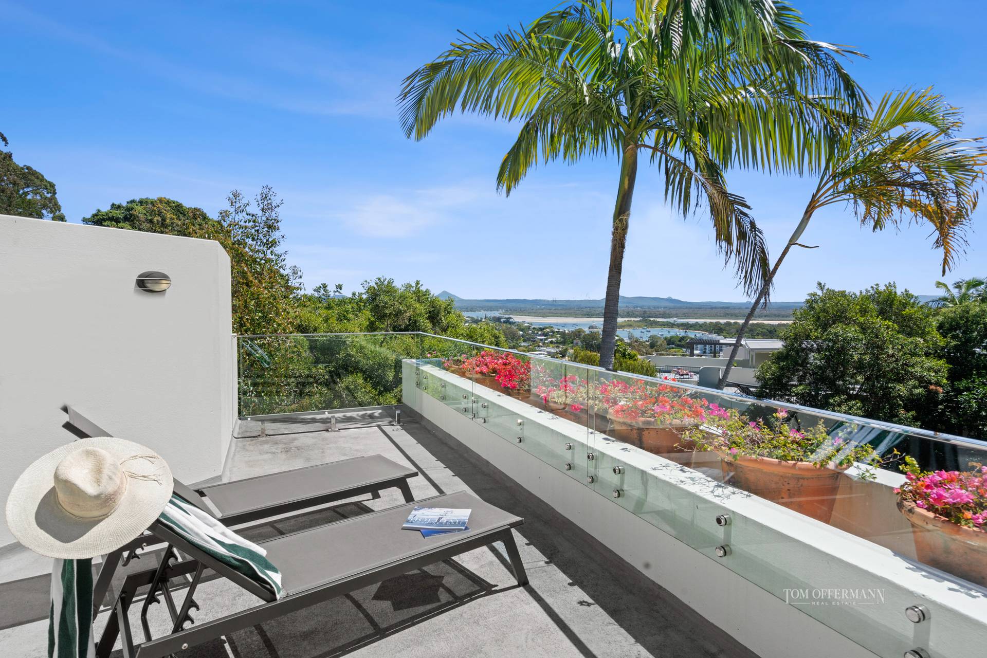 Hear the sound of the ocean from the balcony that melds seamlessly to the undercover terrace with glass balustrade, where another outdoor entertaining option awaits overlooking the swimming pool, or better still take the internal stair case directly up to your own private roof top terrace that overlooks the verdant natural environs of magical Little Cove and over to the stunning Noosa River waterways and Mt Cooroy in the Hinterland. The front row seats are always available for stunning sunset vistas.