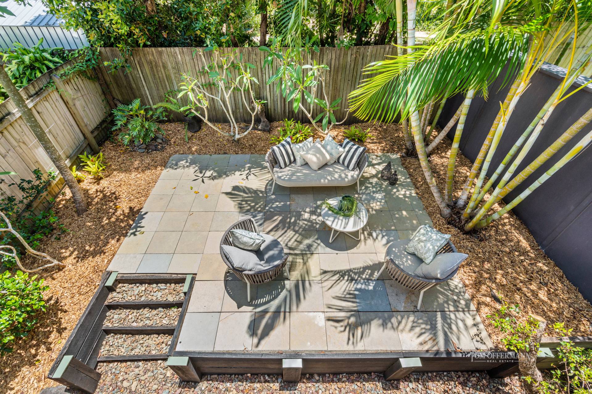 Several stairs below is a fully fenced private garden oasis. Picture lounges