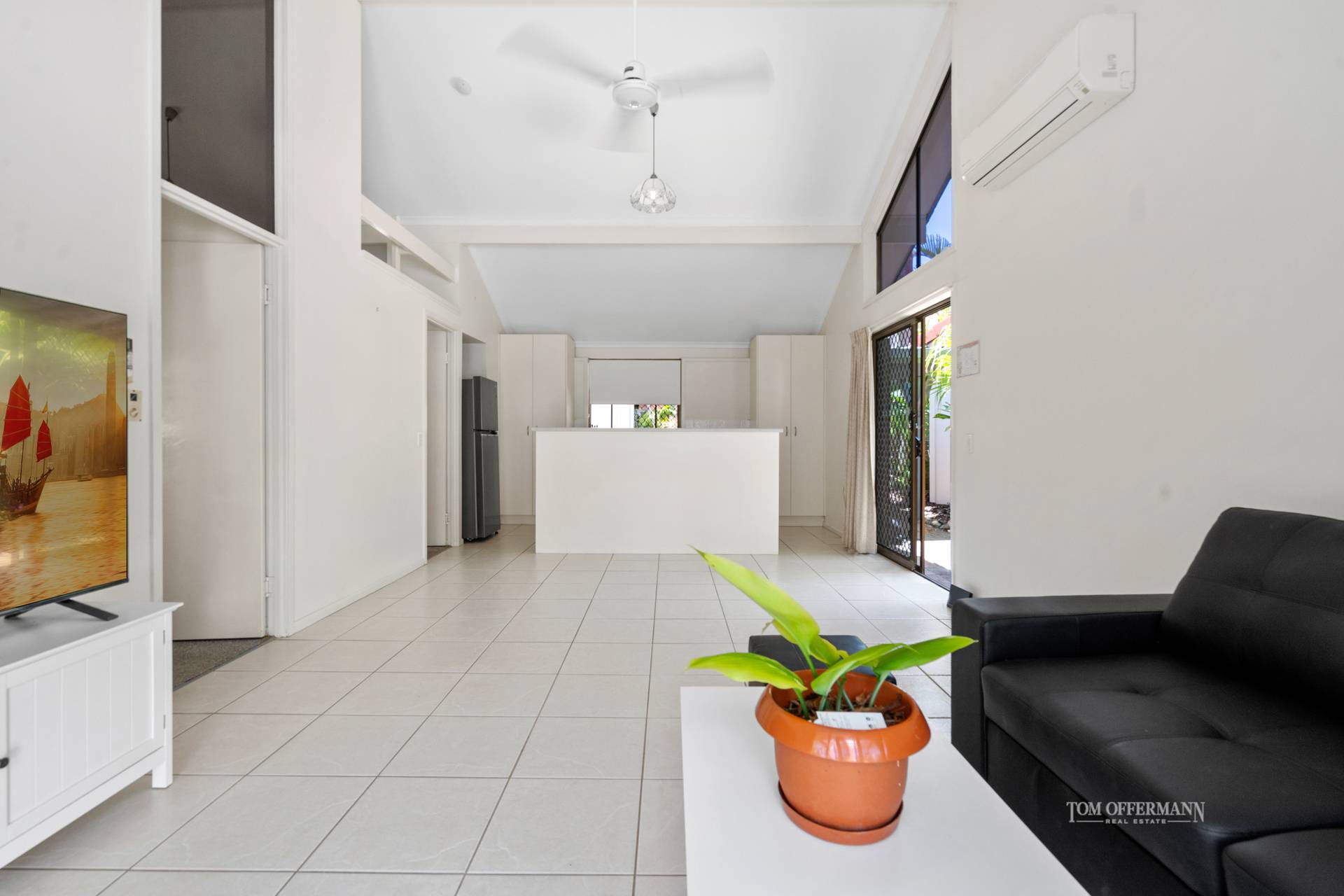 This solid sunny, air-conditioned apartment is light filled. Featuring high ceilings and an open plan design. There is also an elevated loft style office area or ideal for another single bed.