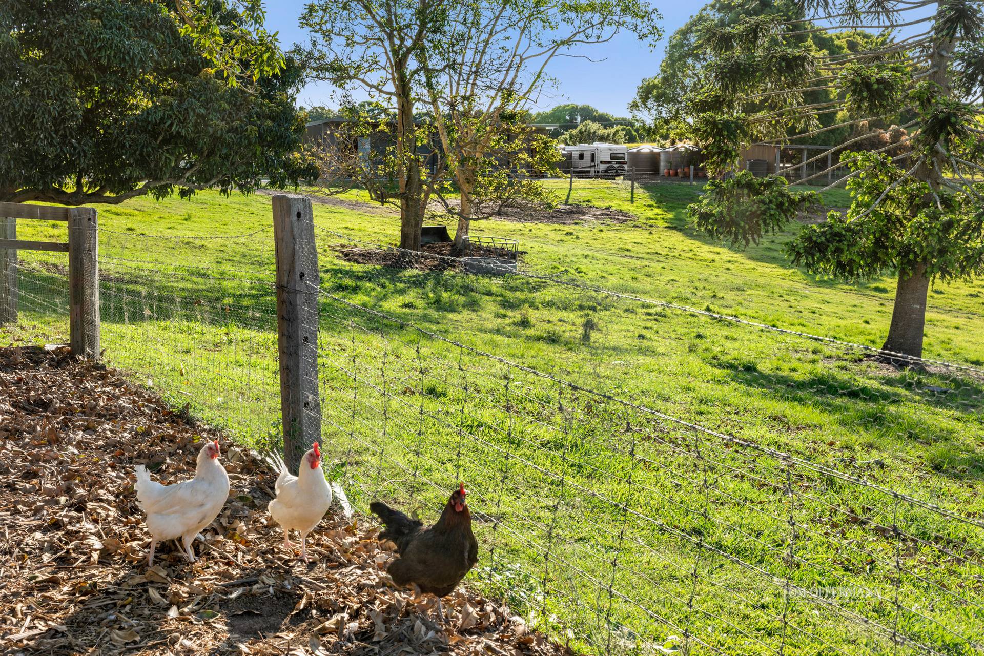Off the living area is a family room and the west wing with very large two bedrooms and walk-in robes. One has an ensuite and a family-sized bathroom has a bathtub. There is a powder room, laundry with storage plus the all-essential mud room with access from the 3-car garage. Close to the residence are myriad wonderful attributes such as a pretty cubby house with bunk beds, sunken fire pit and custom seating, chicken coup, vegetable/herb gardens and two dams with one used for wakeboarding. One guest cabin is fully furnished and self-contained, another sleeps seven.