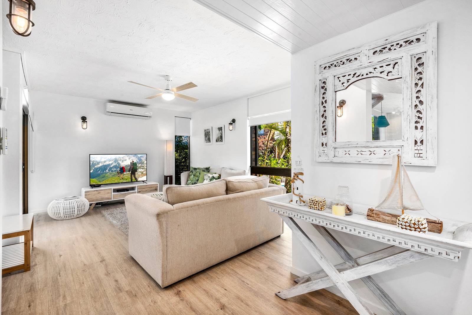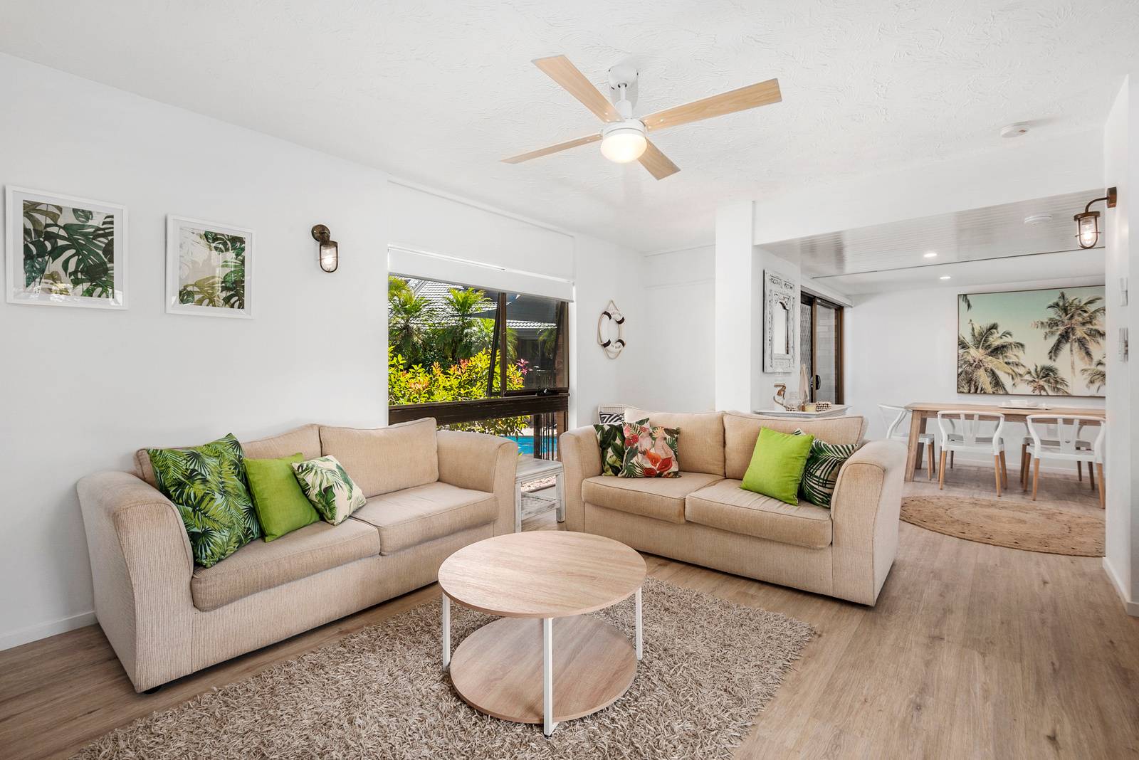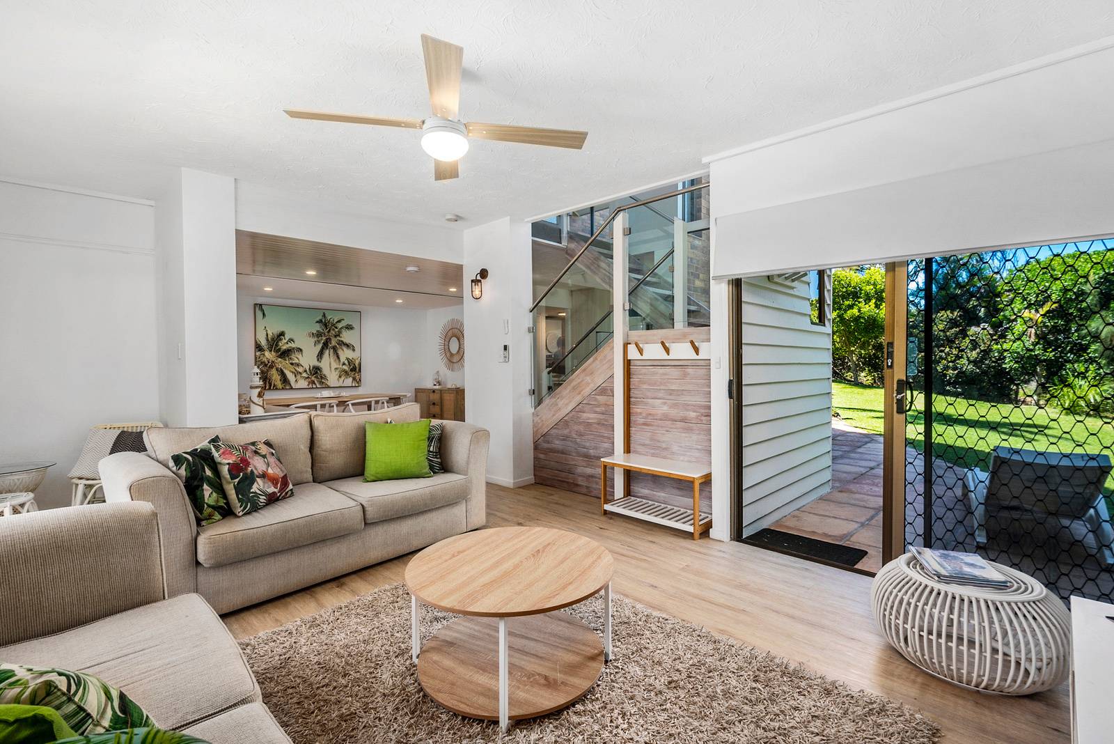 Enjoying ocean views from the master bedroom this 2-story contemporary renovated spacious townhome is linked by a private nature reserve path to a patrolled section of Peregian Beach.