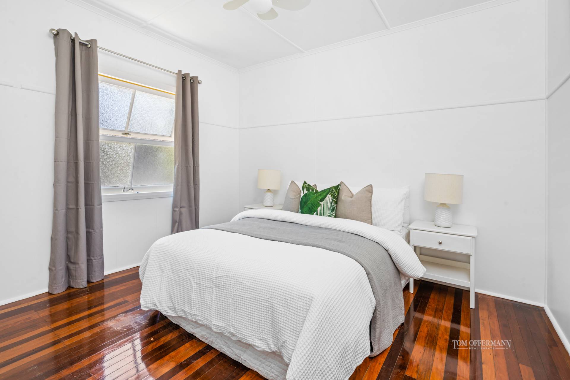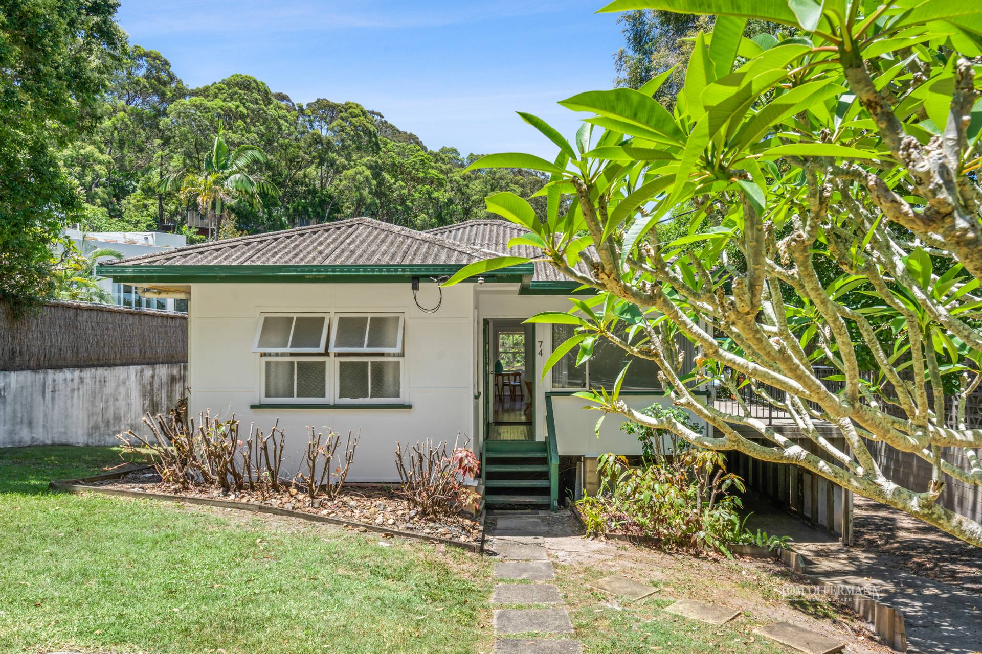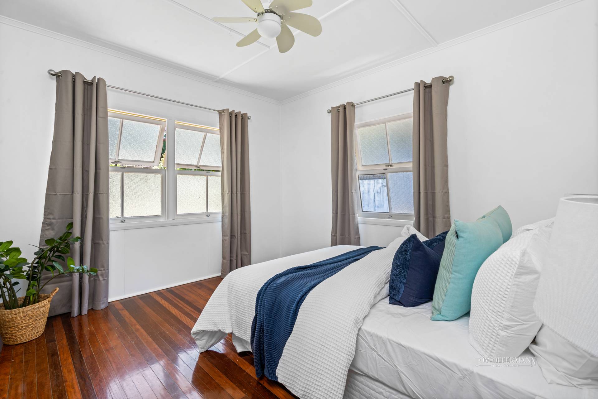 - About: modest timber cottage originally built in 1972 w timber floors; enclosed front verandah w view to Hinterland; French doors to terrace; frosted glass sash/louvre window; 2 queen-size bedrooms; bathroom w shower & WC; kitchen/dining w new Hisense fridge; stove/cooktop; fans; lower-level w laundry, 2 store rooms, laundry & WC + carport w steps to upper level