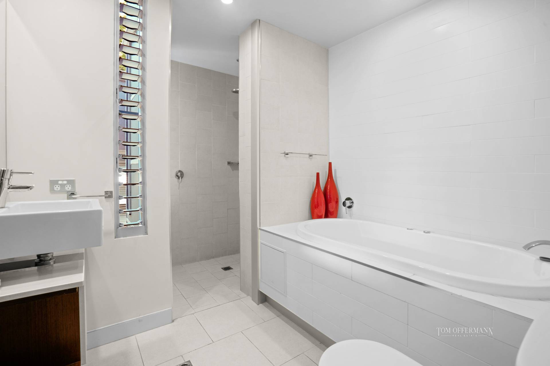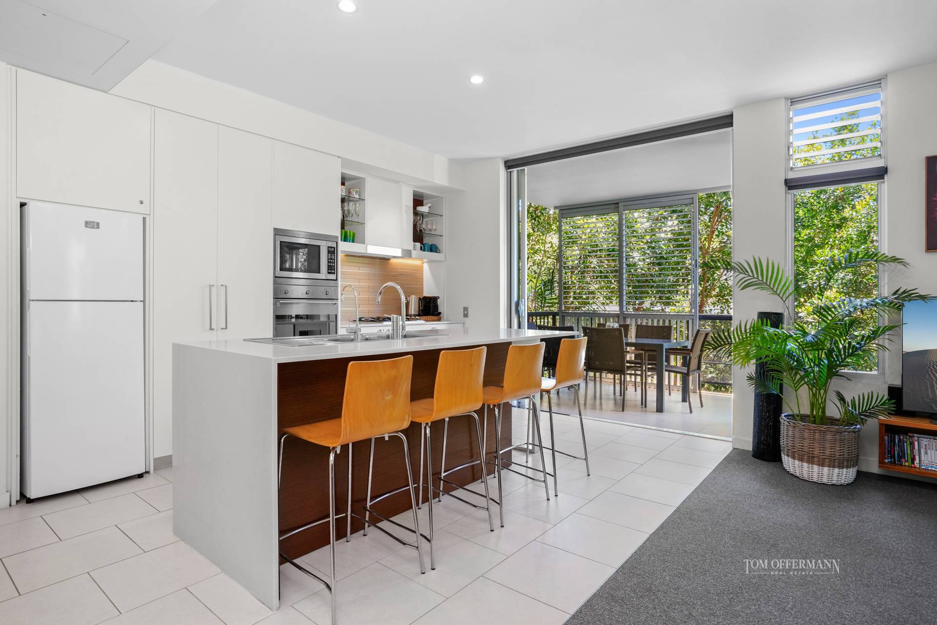Prop at the breakfast bar/island bench and watch a lover of good food cooking in the galley-style, bright white kitchen with stone bench tops and every accoutrement necessary to entertain friends. That is of course when they are not basking in the sub-tropical sun on Noosa Main Beach, warming up after a swim in the safe turquoise waters, walking through the Noosa National Park, or lunching on the beachfront.