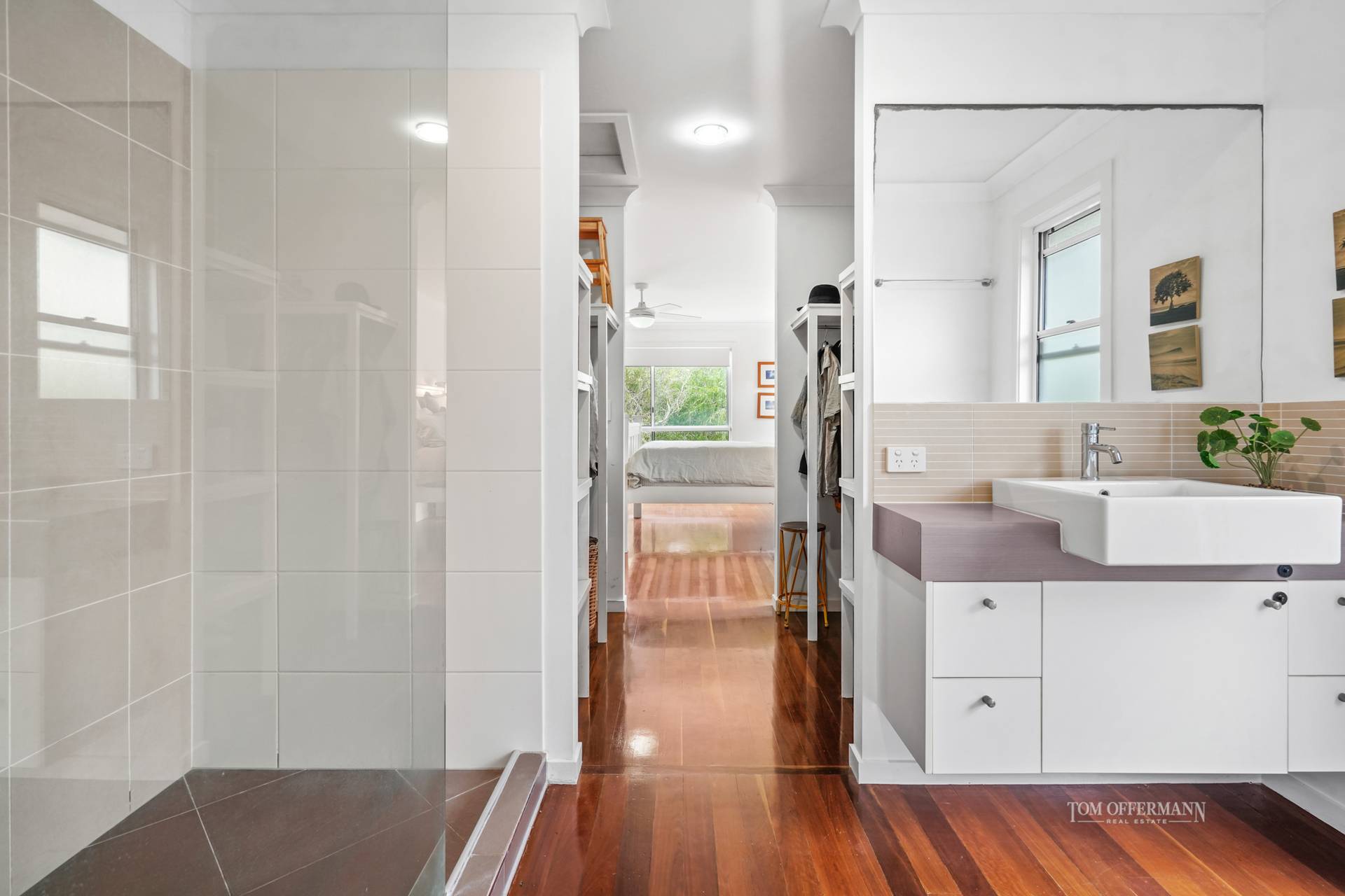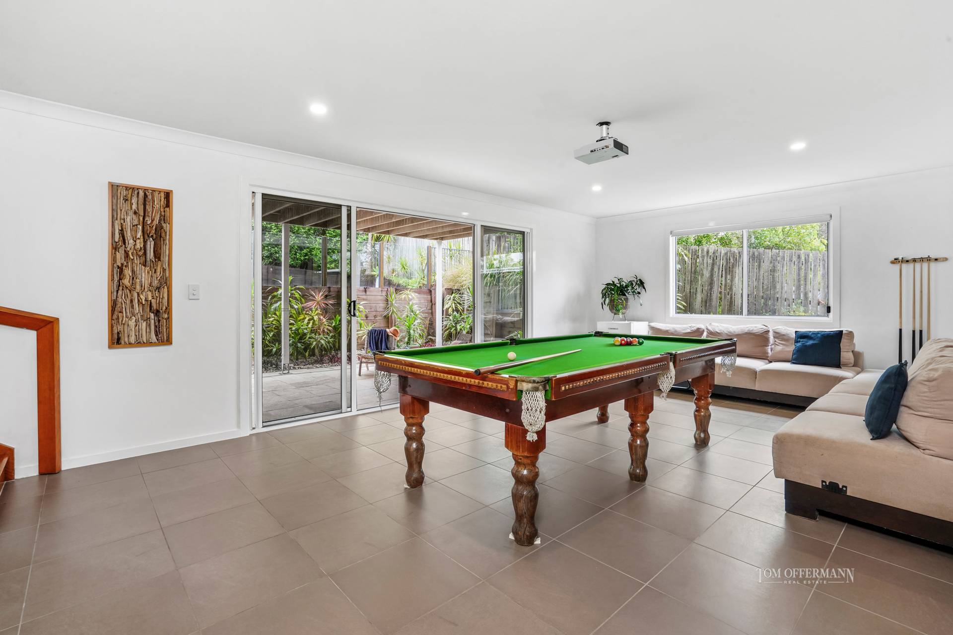 Perfect on a balmy summer's day, in fact every day, is the expansive south-side terrace. It is undercover so an easy extension to entertaining. Of course, kids will always be in a hurry to scramble downstairs and splash in the pool, with the adjoining lawn and is fringed by low maintenance tropical gardens.