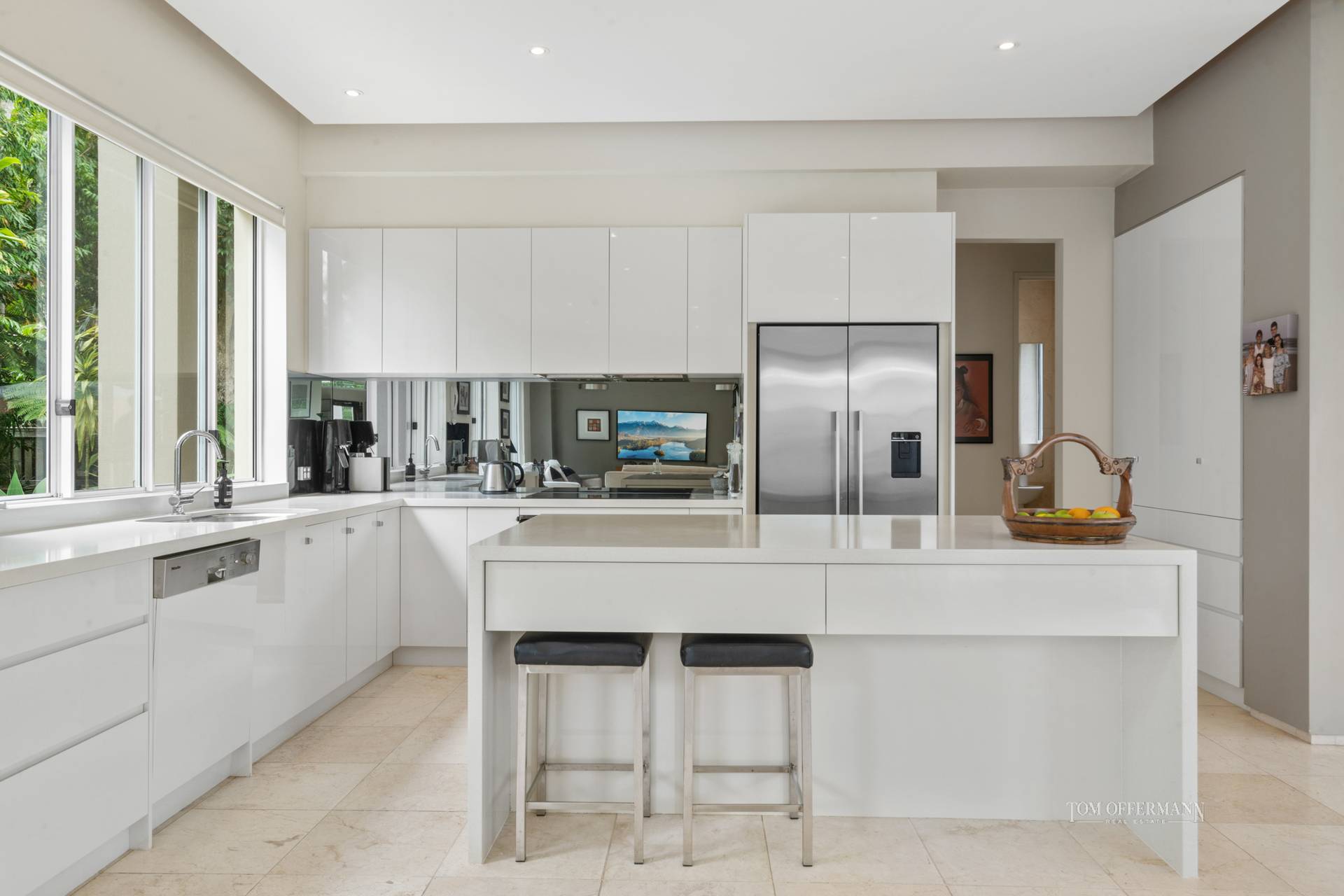 - Kitchen: U-shape w 2m island/breakfast bar, stone-topped 2-pac