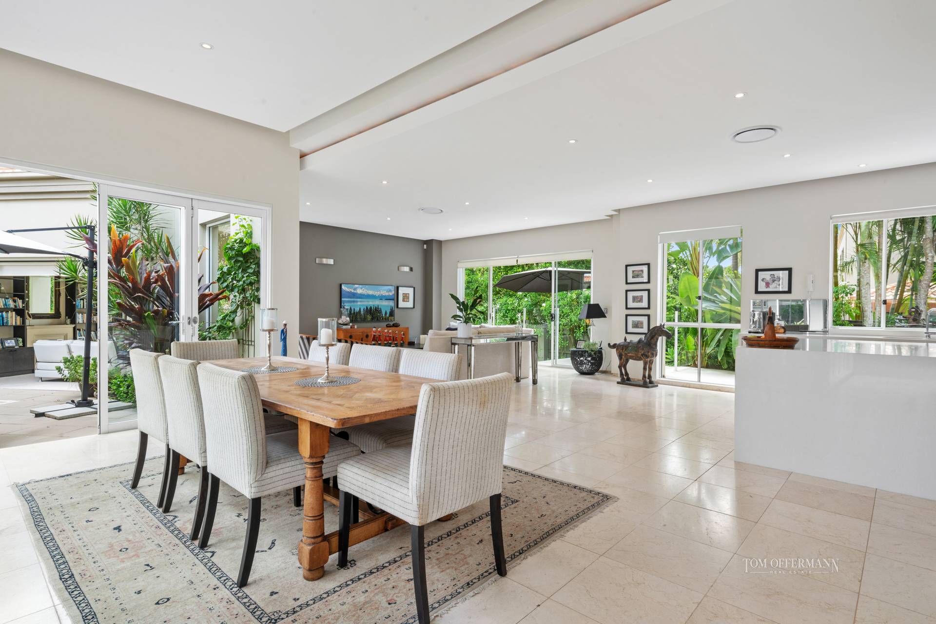 windows/louvres; open plan living & dining + sitting