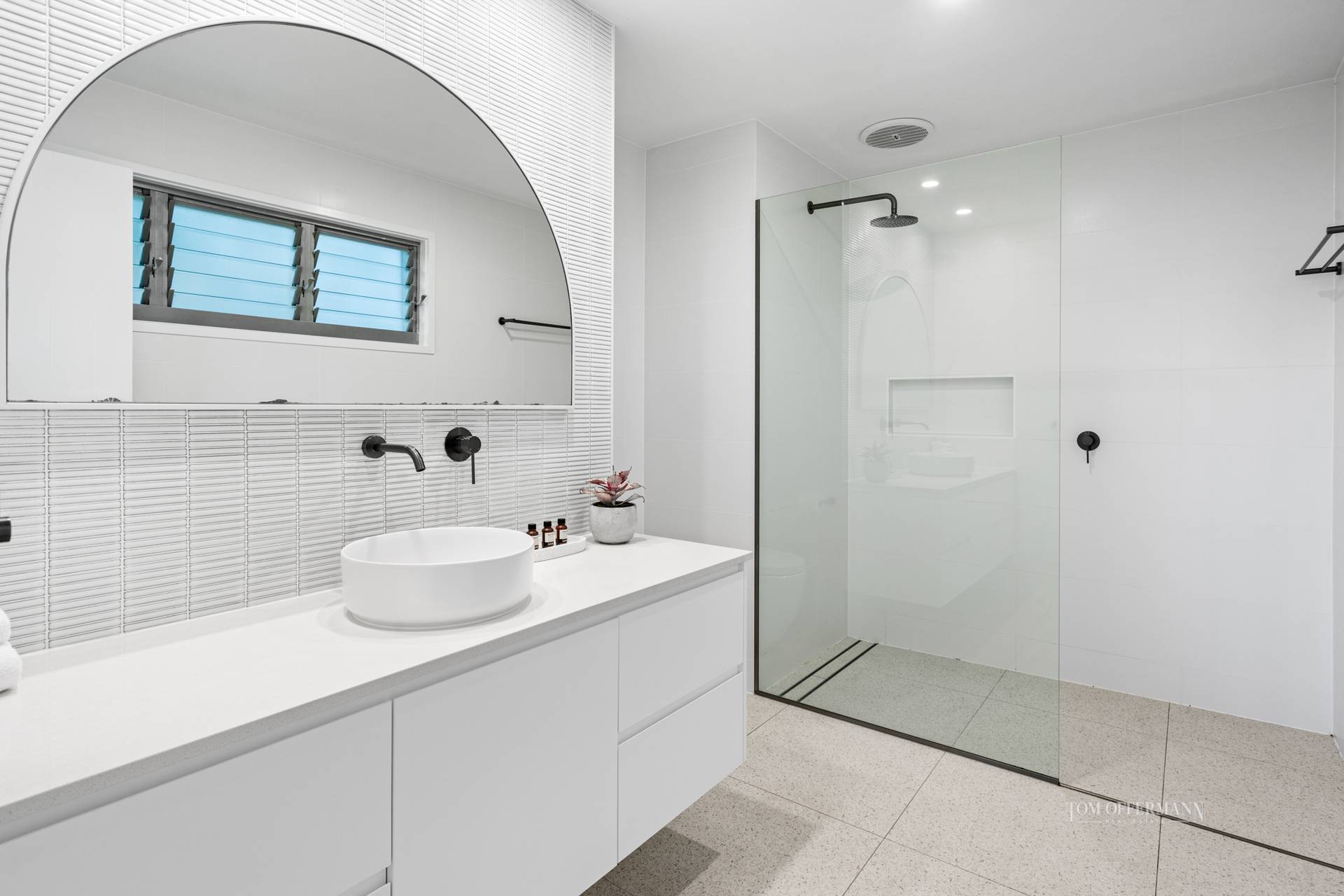 Notice how the verdant streetscape evokes an instant connectivity to the beauty of the surrounds, and how the luminescent pool with sandstone-like surround, sassy wall feature and under cover terrace, has been cleverly designed for utmost privacy and year-round perfect weather conditions thanks to the northerly aspect.