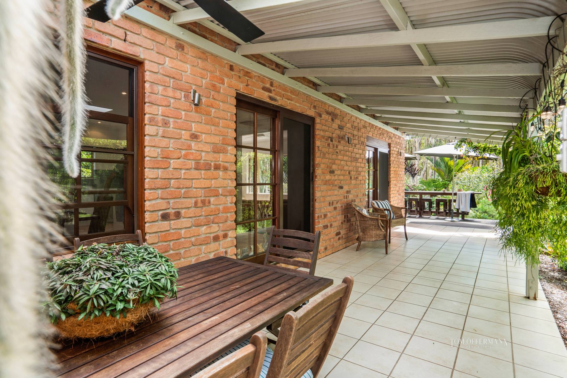 Alfresco there is a high-top bar for cool drinks, communing with the native bird life and being totally enamored with the extent of the land and how paperbacks adorned with elkhorns, abut the Noosa National Park. The botanical-like gardens are beautifully landscaped with a variety of plantings from vines to succulents, the veggie patch is a cook's dream and the extra-large green house has power and an auto irrigation system.
